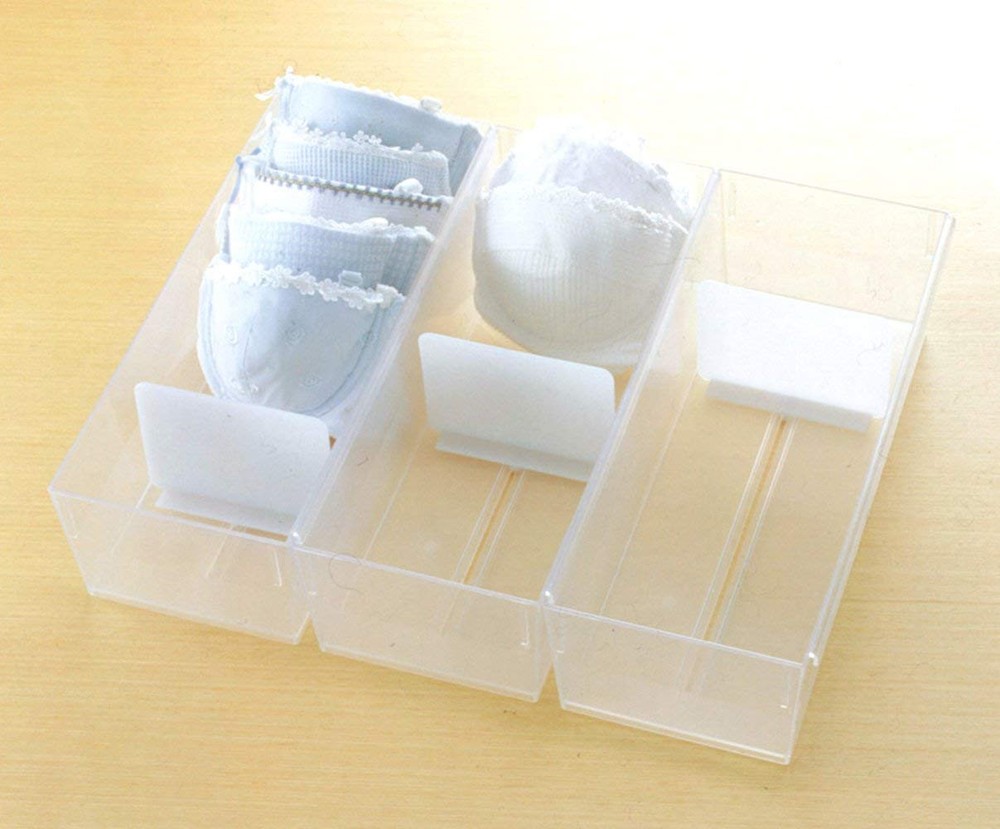 Organizer your drawers with Lingerie Case.Fold and socks, undergarments, ties, and baby clothes standing up to organize drawers.Slide the divider to keep stored items standing up. It is easy to find what you want to wear. Interlocking system securely connects cases. When you pull the drawer, cases stay together and do not mover around.It can hold 7 pairs of socks. It is a perfect organizer to week's worth of socks.Drawer Organizer series comes in 3 sizes. Connect different size cases to organize your drawer neatly. Size: 5.51”×12.99“×3.74”h (W140×D330×H95㎜)Made in Japan quality 12.99"L x 5.51"W x 3.74"H 0.65 Pounds Polypropylene, Polystyrene Country of Manufacture: Japan Fold and socks, undergarments, ties, and baby clothes upright to organize drawers. The interlocking system securely connects the cases, don't move around when you pull the drawer. Slide the divider to keep stored items upright, making it easy to find what you want to wear.