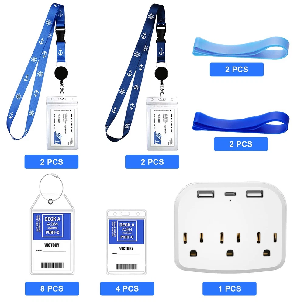 Cruise Essentials Kit: 4 pcs of cruise ship card holders with lanyards, 8 pcs of cruise luggage tag holders with stainless steel loops, 4 pcs of towel bands and 1 pc of cruise power strip. Material: The cruise luggage tag holder is made of quality PVC material, it is clear, sturdy and durable; the stainless steel loop and zip sealing design can keep cards inside from falling off, can use long time. Size: The cruise tags holders for luggage are approx. 3.5 x 7.3 inch,with the matched hanging loop measuring about 1.97 inch/5 cm in diameter, the cruise ship lanyard is about 19.5 inch/50 cm in length, the power strip measuring approx. 3.46 x 1.1 x 2.8 inches, and the towel bands are about 23.62 x 0.71 inch/ 60 x 1.8 cm . Practical Kit: The cruise accessories must have when you cruise, clear luggage tags for cruise are proper in size and light in weight, convenient for you to carry around, enough to meet your cruise use demand. Wide Applications: The cruise accessories can be applied for your travel, cruise, vacation and many other occasions, the ship card holder and luggage tag holder can hold your ID card, luggage tag, ship card, flight information tag and more. *lucky*vorobey* Kindly note: If you would like to order more quantity than shown is available, you are welcome to place one order fox maximum available quantity and place one more order again because we always have more, than shows in available items. Best wishes