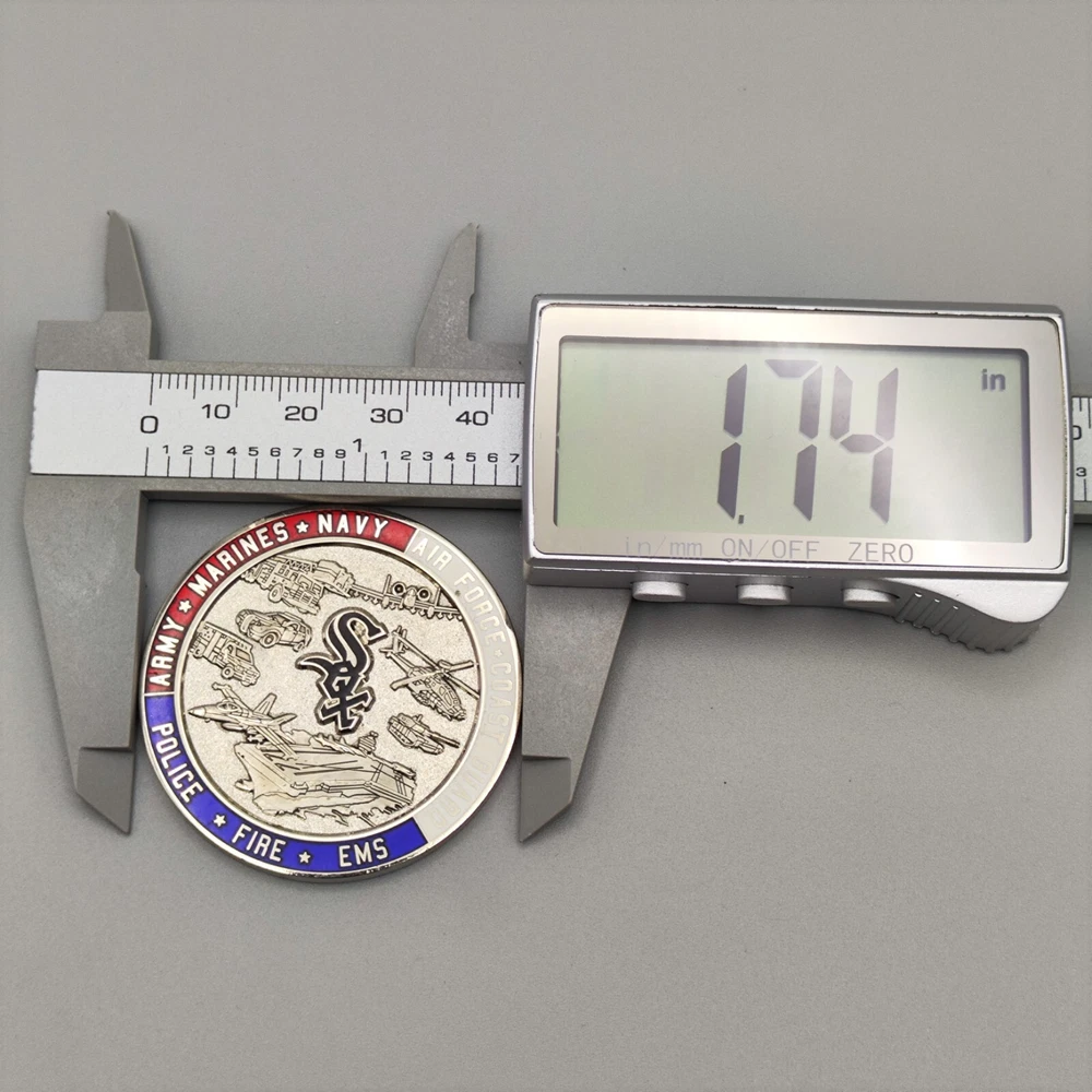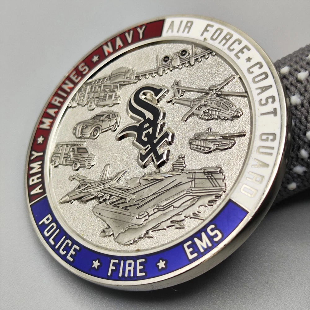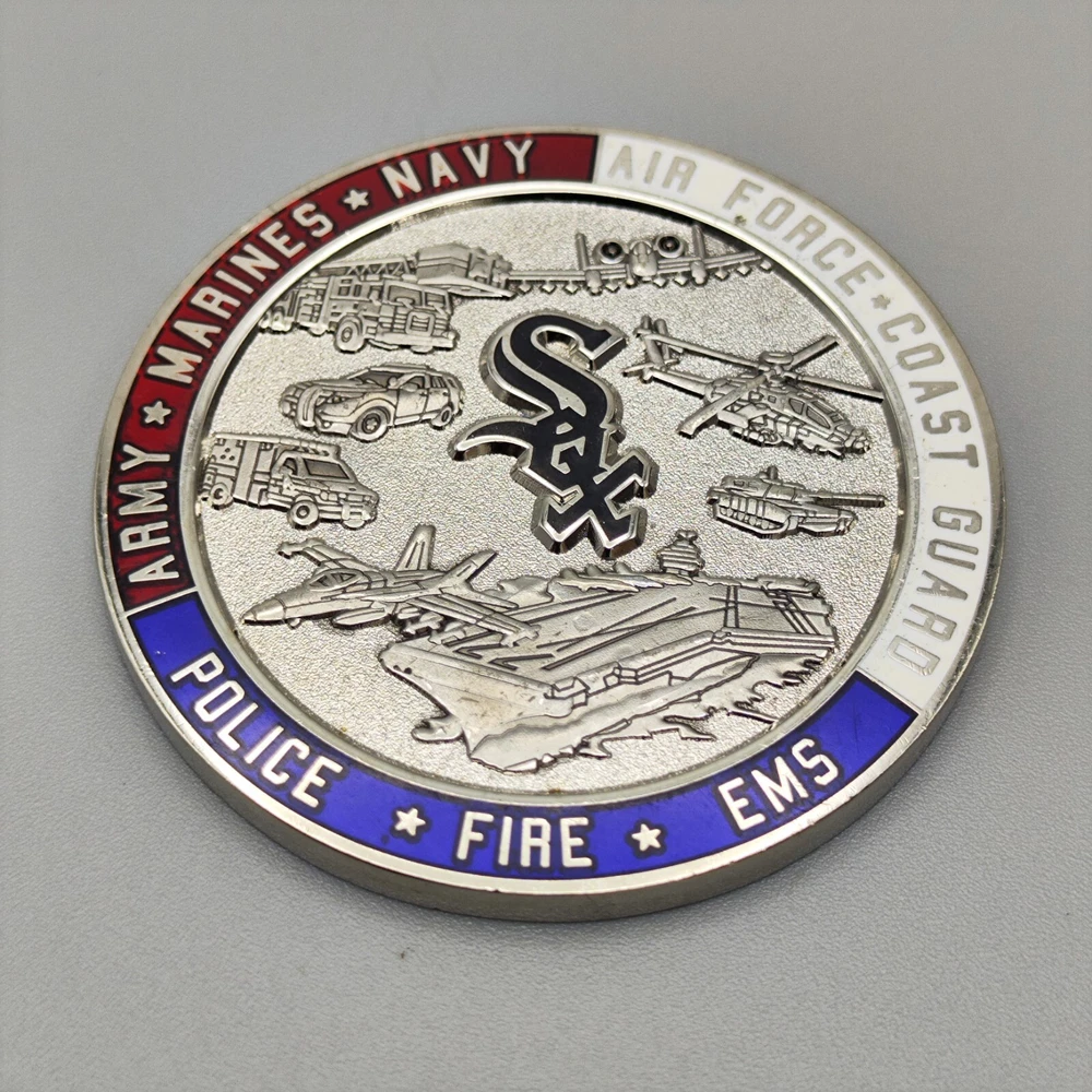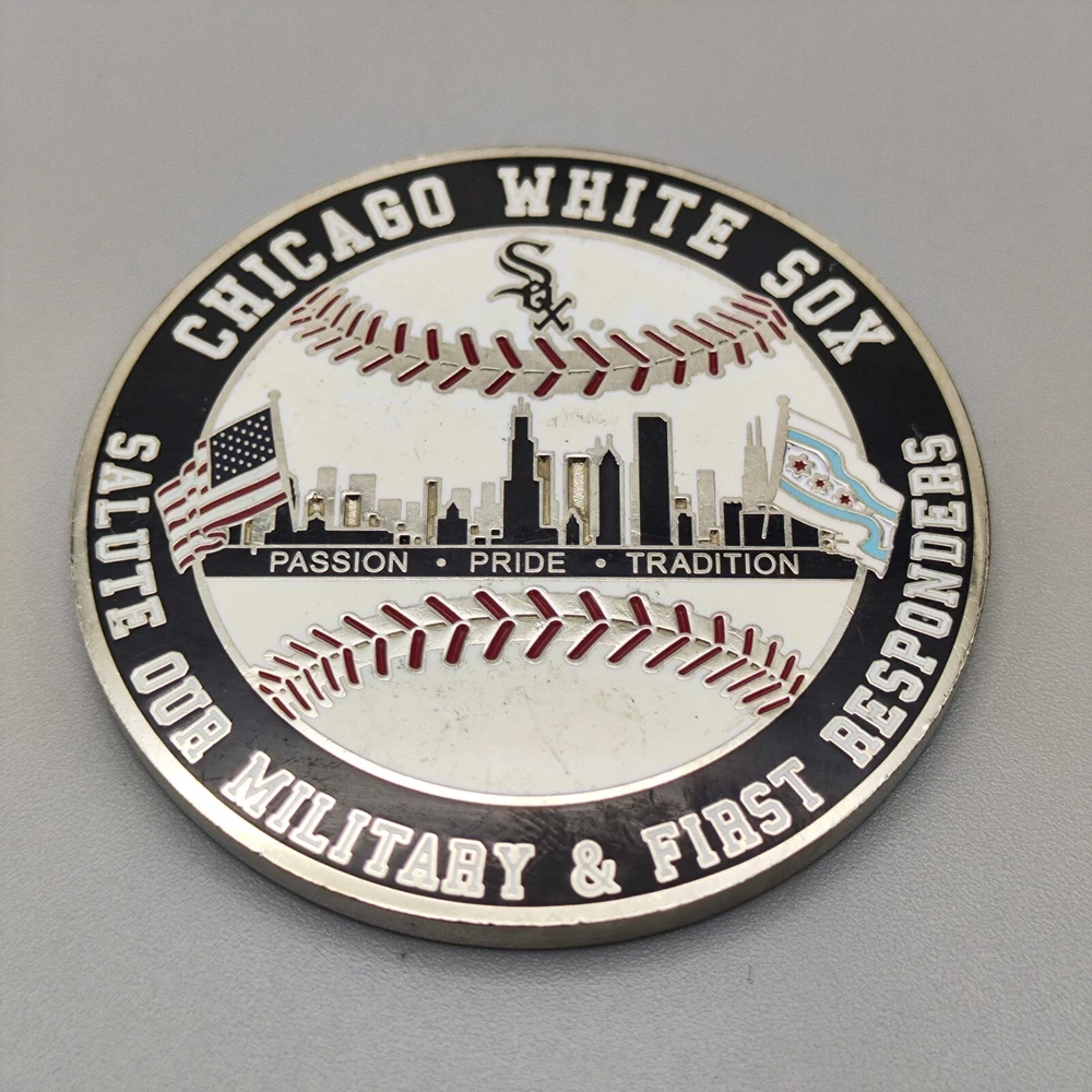 TITLE-- Chicago White Sox Salute Our Military Challenge Coin SIZE-- Measures approx. 1.74 inches Used coins have imperfections, please see pictures SHIPPING -- Ships within 5 days of receiving payment. Your purchase will be carefully packaged and you can always check tracking information on eBay Purchase two and more and get a discount on shipping SERVICES -- If you have any questions, you can contact us at any time, we will reply you as soon as possible to solve your problem If you are not satisfied with your purchase for any reason, please contact us before leaving neutral or negative feedback, we will solve the problem for you properly