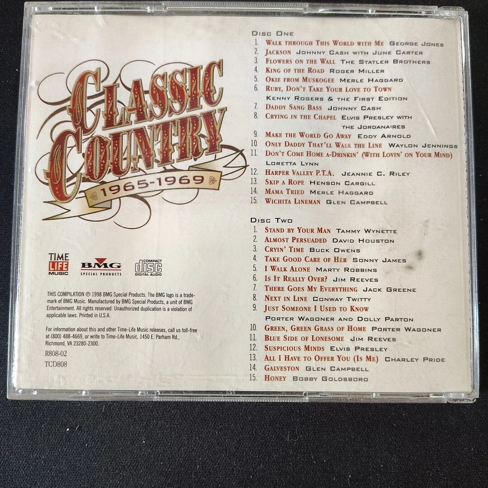 This 2 CD set by Various Artists is a must-have for fans of Gospel and Country music from the 1960s. The CDs, released in 1998 by TIME/LIFE Music, feature hits from the era and are graded as Very Good Plus (VG+). The case is also in Very Good Plus (VG+) shape. The music on this set is perfect for those who love the classic country sound and want to add to their collection. With a variety of artists and songs, this CD set is sure to please any fan of the genre. Don't miss out on the chance to own this rare gem.