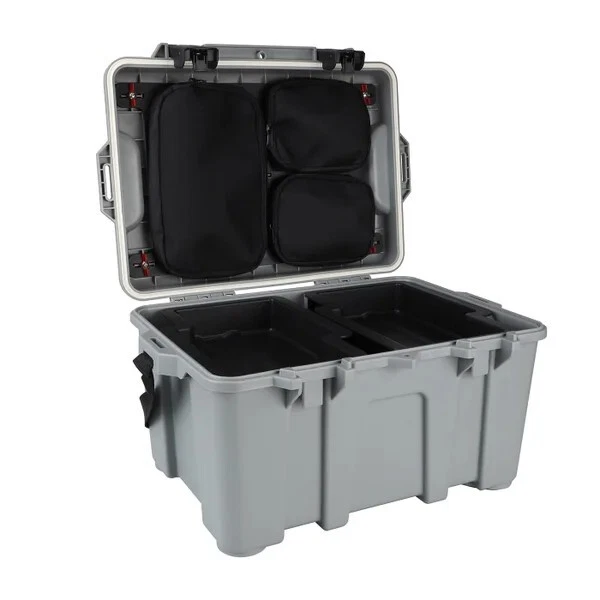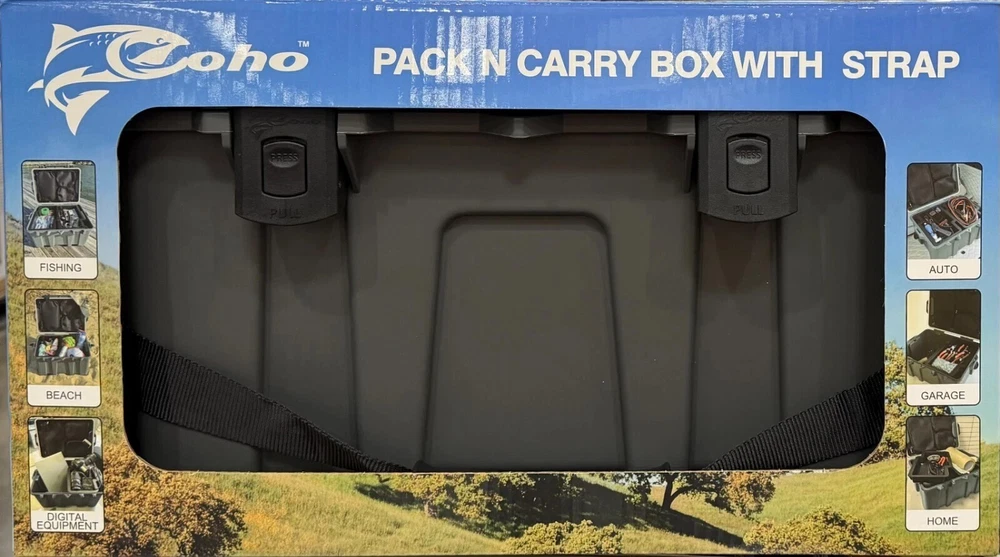 Coho Pack N Carry Storage Box with Strap, 20.2” L x 14.7” W x 11.1” H Please note that the actual color of the product differs significantly from the advertised gray — it appears closer to dark gray in reality. Features: Heavy Duty Latches with Hand Strap and Removable Lid Storage 2 x Storage Trays Padlock Capable Heavy Duty Construction Waterproof Built for rigorous transport, the Coho Pack and Carry Storage Box is tough and can withstand everyday use. Made with heavy duty latches, this storage container will be an organizer for everything from sports equipment to camping supplies or a tool chest. Durable and strong, these storage bins will serve you for a lifetime. Includes: (1) Storage Box (2) Storage Trays Features: Type of material made out of PP Color: Gray or Tan 11lbs