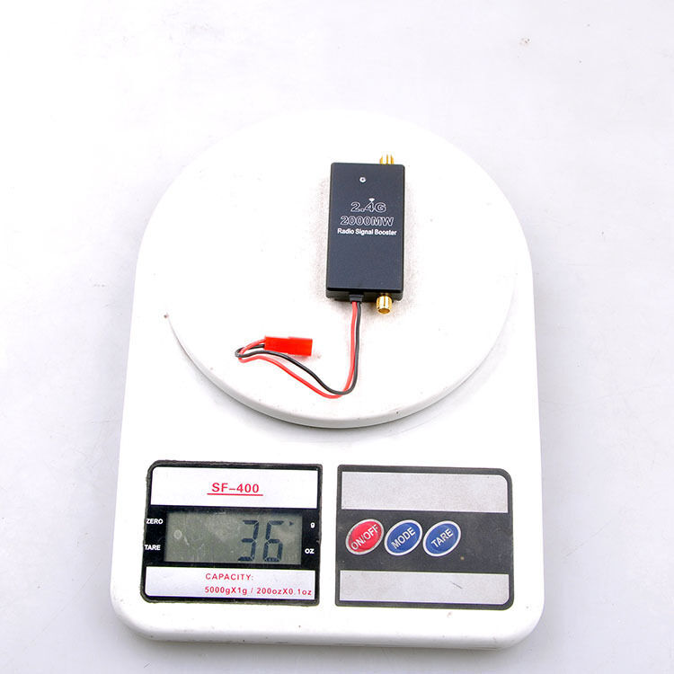 You may also like Walksnail-WS-M181 GPS M10 GNSS QMC5883 DIY RC FPV Drone Compass Ceramic-Antenna 15.12 USD 16.09 USD 3.0 USD 6% off BETAFPV C04 Camera and VTX ModuleM04/Betaflight FC/Cetus V2/Cetus FC For Cetus X 51.41 USD 54.69 USD Free shipping 6% off Holybro Micro OSD V2 Module for Pixhawk4 / Pixhawk4 Flight Controller RC Drone 33.46 USD 35.6 USD Free shipping 6% off SURPASS HOBBY RC 2.4G CH2 Transmitter/Receiver +30A 2 in 1 Esc Comb Set New 34.21 USD 36.39 USD Free shipping 6% off New Voltage Booster 1S Lipo 3.7V to 5V Step-up Converter Module Output 500mah 3.78 USD 4.02 USD 3.0 USD 6% off JMT 4pcs Magnetic Body Post Mount Contact Shell Column for 1/10 RC Drift Car 6.53 USD 6.95 USD 3.0 USD 6% off Mini DVR Video Recording for RC Drone with Storage Function NTSC/PAL Adjustable 28.65 USD 30.48 USD Free shipping 6% off CR1 Module PPM/SBUS to ELRS CRSF Protocol Adapter for AT9S FLYSKY Transmitter 7.44 USD 7.91 USD Free shipping 6% off XT30 Plug Male and Female Connector Cable for RC Lipo Battery FPV Drone charger 3.36 USD 3.57 USD 3.0 USD 6% off JMT 194mm Mini F4 Pro OSD RC FPV Racing Drone Quadcopter New 192.78 USD 205.08 USD Free shipping 6% off JMT F4 X1 175mm FPV Racing Drone Frame Kit Carbon Fiber Rack for DIY RC Drone 13.62 USD 14.49 USD Free shipping 6% off SKYRC Power Switch On/Off MCU Controlled LIPO NIMH Battery RC Car 14.24 USD 15.15 USD Free shipping 6% off 4Pairs HQ Ethix S5 Prop 5X4X3 5040 5inch 3-Blade Propeller CW CCW for FPV Drone 6.41 USD 6.82 USD 3.0 USD 6% off QX-MOTOR 64mm Impeller Fan Barrel EDF ohne Motor RC Zubehör für RC Flugzeug 8.6 USD 9.15 USD 3.0 USD 6% off 4pcs Carbon Fiber 3-Blade 5042 Propeller Props CW/CCW For Parrot Bebop 3.0 Drone 14.33 USD 15.24 USD Free shipping 6% off AlfaRC 3inch Propeller Frame Kit RC Drone For Foxeer Caddx ELRS 5.8G VTX Motor 18.71 USD 19.9 USD Free shipping 6% off US STOCK you will receive the item soon FPV 2.4G 2W 2000mW Mini Radio Signal Booster Amplifier Module for DJI Phantom RC Transmitter FPV Extend Range Description: Item Name: 2.4G 2W Signal Booster Material :CNC aluminum Input Voltage: 5V-15V Transmitter Gain: 11dB ±1.5dB Noise Figure: ≤3.0dB Input power range: 4dBm-20dBm Max output power: 33dBm(2W) Operation Voltage: 5V-15V Operation Current: ≤400ma Working indicator: Blue Input connector: RP-SMA Female (Outer thread - inner hole) Output connector: SMA Female (Outer thread- inner pin) Size: 62*32*10mm (without antenna,mount and power cable) Weight: 36G (without antenna) Features: Designed for FPV, with small size, light weight, and heat dissipation. Using a wide input voltage design, 5V-15 input can be. Users can either use an external power supply, also can use the power supply come with transmitter . CNC manufactured using aluminum alloy shell,play a good cooling effect,also play excellent shielding function. Decrease interference Note: Working fever is a normal phenomenon, users do not worry. Please assemble the antenna before powering on. User may need to solder the signal booster to original transmitter module. The product will require DIY modify skills and relative knowldge. Please confirm before purchasing. Only after connecting the remote control, the blue LED will light. Instructions: The amplifier input through SMA high-frequency line accessing to remote control high-frequency output connectors or solder line inside remote control, the center stage is high-frequency signal, around is negative. The amplifier output termination accessing to antenna, then connect the power input . Special Note: This amplifier suits the users who have some electronic knowledge base to DIYtransformation, it may require to open the Radio controller, drill holes, wiring andso on. Please take it into account before purchase. Package Included: 1 x 2.4G 2W Signal Booster 1 x Antenna 1 x Power Cable 1 x Connecting Cable Effective pictures, Product do not include the Radio Controller or other accessories: 1/8 RC Car Motor Mount with Center Diff Fixed Base for Motor Installation 15.75 USD 16.76 USD Free shipping 6% off 1Pair Thick Gold Plated 3.5mm Bullet Connector ( banana plug ) For ESC battery 3.05 USD 3.25 USD 3.0 USD 6% off JMT F4 X1 175mm FPV Racing Drone Kit RTF with FPV Goggles Flysky Remote Control 305.82 USD 325.34 USD Free shipping 6% off 4PCS RC Drone A2212 1400KV Brushless Outrunner Motor 10T Speed Controller ESC 56.17 USD 59.76 USD Free shipping 6% off IMAX B3 PRO Lipo Battery Compact Charger 7.4V 11.1V 2S 3S Power Supply Charger 7.84 USD 8.34 USD 3.0 USD 6% off DIY RC Drone Aircraft QuadCopter A2212 1400KV 30A Speed Controller ESC 14.86 USD 15.81 USD Free shipping 6% off 2 Pairs GEMFAN 3032-3 3-Blade PC Propeller 76.2mm 2mm Hole For DJI AVATA 2 Drone 4.53 USD 4.82 USD 3.0 USD 6% off AlfaRC 3inch Propeller Frame Kit RC Drone For Foxeer Caddx ELRS 5.8G VTX Motor 18.71 USD 19.9 USD Free shipping 6% off 8A Micro Brushless Motor Driver Board Electric Speed Controller for 1104 1106 4.51 USD 4.8 USD 3.0 USD 6% off RUSHFPV TinyTANK Image Transmission Extension Board Whoop Extension FPV Drone 5.97 USD 6.35 USD 3.0 USD 6% off RUSHFPV TINY TANK 5V Power Supply 350MW Traverse FPV Transmission 48 NanoVTX New 39.21 USD 41.71 USD Free shipping 6% off V196 Brushless Drone Aerial Vehicle Remote-Controlled 8K Brushless Optical Flow 59.54 USD 63.34 USD Free shipping 6% off Happymodel SE0702 1S Brushless Motor 26000KV 28000KV 1mm Motor For FPV Drone New 14.14 USD 15.04 USD 3.0 USD 6% off Axisflying MANTA10 Lite/10inch FPV Freestyle Ture X Frame Kit for DIY RC Drone 72.75 USD 77.39 USD Free shipping 6% off BETAFPV C04 Camera and VTX ModuleM04/Betaflight FC/Cetus V2/Cetus FC For Cetus X 51.41 USD 54.69 USD Free shipping 6% off BETAFPV ELRS Nano Receiver ExpressLRS 2.4G/915MHz/868MHz Nano RX Receiver Drone 13.85 USD 14.73 USD Free shipping 6% off
