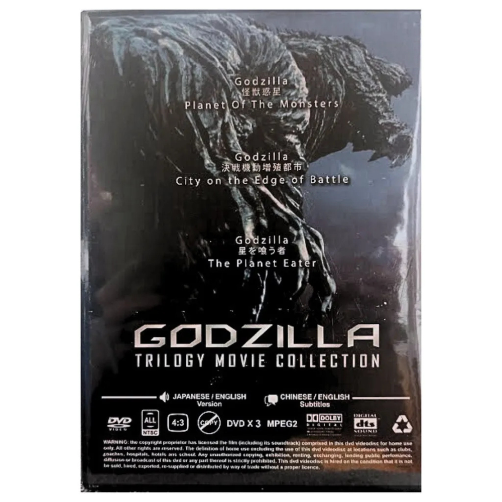 DVD Anime Godzilla Trilogy Movie Collection ~ English Dubbed All Region List of movie : Godzilla 1: Planet of the Monsters / Kaijuu Wakusei Godzilla 2: City on the Edge of Battle / Kessen Kidou Zoushoku Toshi Godzilla 3: The Planet Eater / Hoshi wo Kuu Mono Features and further details Title : DVD Godzilla Trilogy Movie Collection Details: Language: Japanese/English Subtitle: English/Chinese Media Type: NTSC; Fullscreen 4:3, All Region DVD Edition Year: 2020 No. of Disc: 3 DVD Weight : 171g Genres: Action, Adventure, Sci-Fi Contact us We can be contacted at any time through eBay messages if you have any questions, comments or product requests. We will respond to you within 24 hours and do our best to help you out! We encourage our customers to contact us with any questions or concerns! We'd like to be sure you are completely satisfied with your purchase. Payment We accept payment via eBay - managed payment Shipping We are using standard international shipping. Handling time is 1-3 business working days. Your goods will be shipped with valid tracking number. All products is packed , layered with bubble wrap to reduce damages during shipment delivery. Estimate delivery is between 11 to 23 business working days. We also provide express shipping as an option. Estimated delivery is between 5 to 8 business days. **Rest assured we will ensure your package arrives as soon as possible. However, the delivery may be delayed due to some unforeseen circumstances which is out of our control, such as bad weather, high postal traffic and the performance of shipping companies. Return If you have any problem with the order, do contact us via eBay message, we will be glad to assist you and resolve your problems as soon as possible. Items can be returned within 30 days in good condition. Note: Import duties, taxes and additional charges are not included in item price or shipping charges. Please be aware these custom import duties and taxes are buyer's responsibility. Free eBay listing template designed by © dewiso.com .
