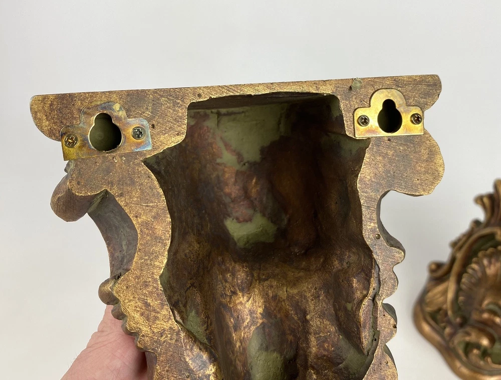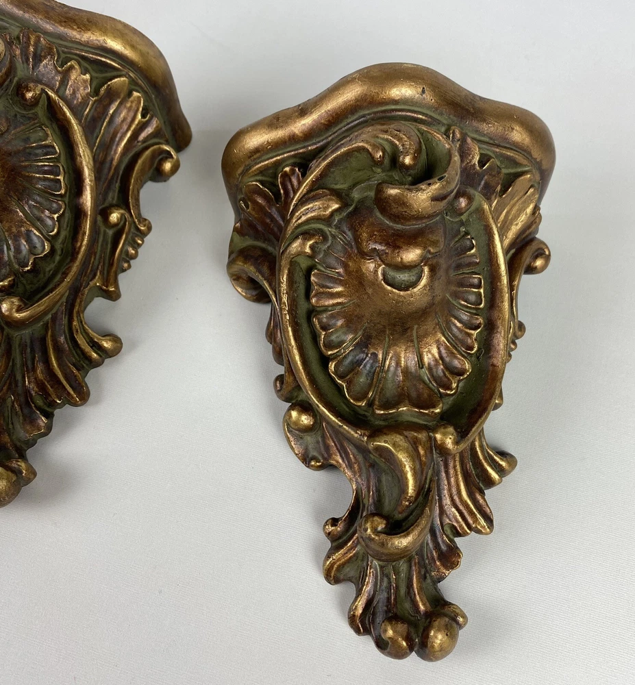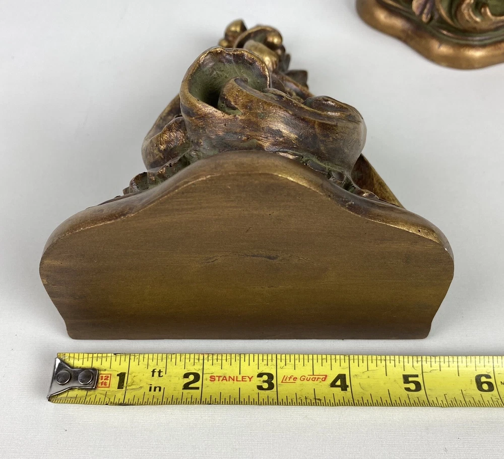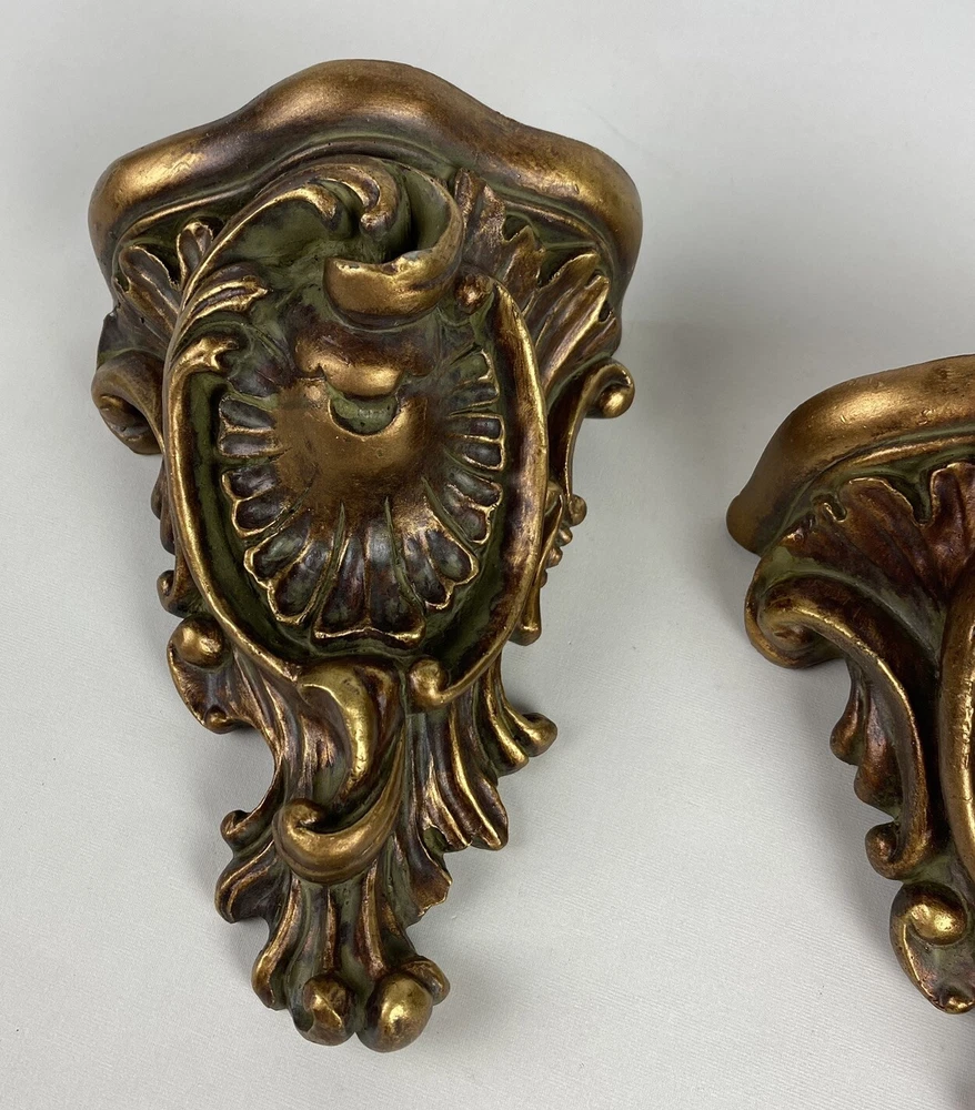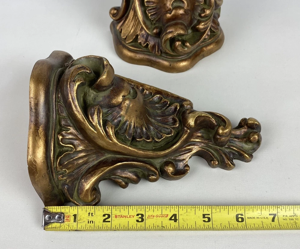 Color: Bronze Tone Room: Home Office/Study, Bathroom, Bedroom, Dining Room, Entryway, Kitchen, Living Room, Porch Brand: Unbranded Number of Items in Set: 2 Features: Wall Mountable Number of Shelves: 2 Item Length: 3.5 in Deep Assembly Required: No Set Includes: Two Corbels Type: Shelf Brackets Theme: Classic Distance from Floor to Bottom: 7 in Mounting: Wall Mounted Item Height: 7 in Material: Resin Finish: Gilded Style: Art Deco Item Width: 5 in Item Weight: 1.4 lb Each Model: 61335