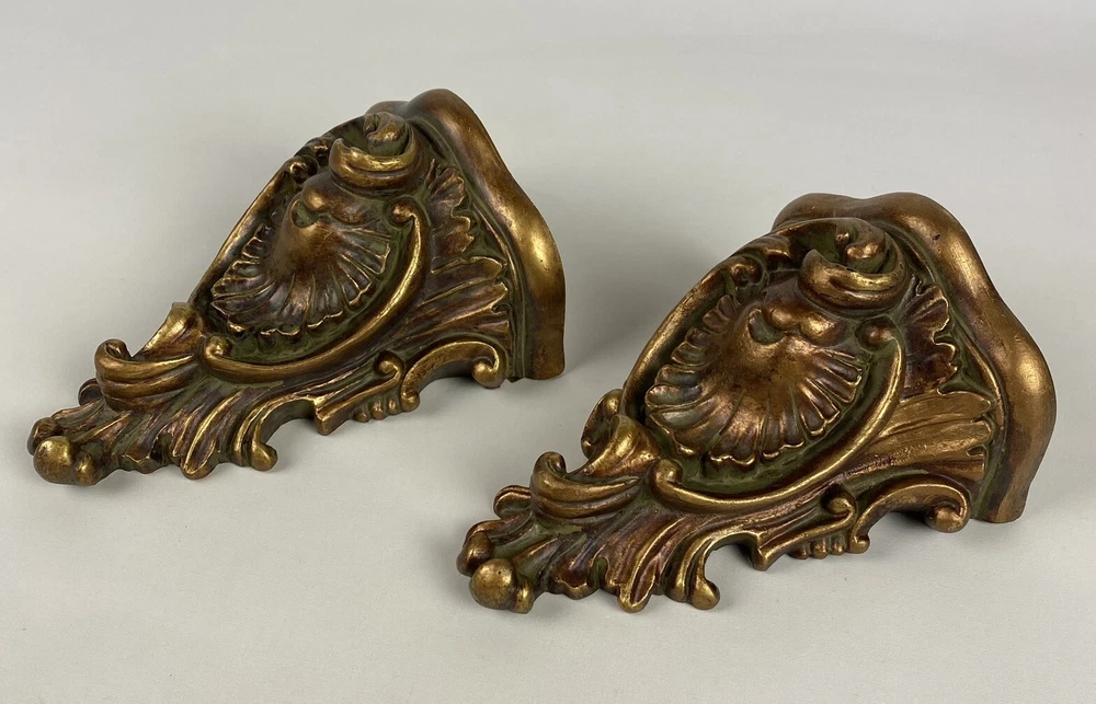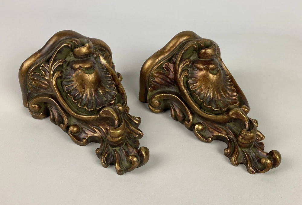 Add a touch of elegance to your home decor with these beautiful decorative corbels. Crafted from high-quality bronze tone resin, these wall-mounted shelf brackets feature an intricate Acanthus leaf design with a gilded finish. Measuring 7 inches in height and 5 inches in width, these shelf accents are perfect for displaying on your entryway, porch, bathroom, kitchen, bedroom, living room, home office/study, or dining room. The set includes two corbels, each weighing 1.4 lbs. These classic art deco style corbels are easy to install and require no assembly. They are ideal for adding a touch of sophistication to any room in your home. Order now and elevate the look of your living space with these stunning decorative corbels. Please take time to look closely at all photos of items and specifics, as they are all part of the complete description. Most noticeable flaws we see will be pointed out with a pen. All items in the photos are of the actual product being shipped directly to you (minus display props and measuring devices) If an item is not in the photos, please do not expect it. If you have any questions or concerns, please reach out to us. Our feedback speaks for itself. We do all we can to keep you satisfied with your buying experience from Streamline717