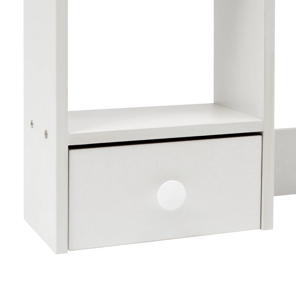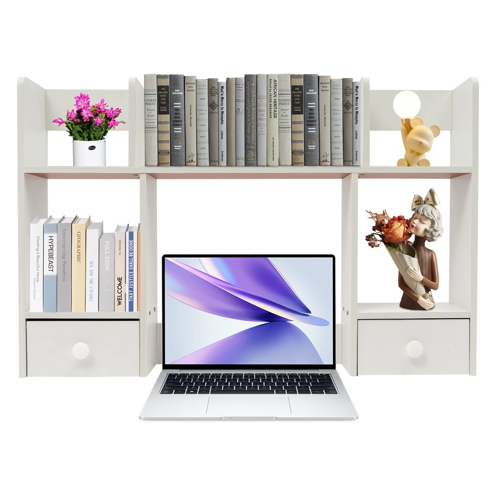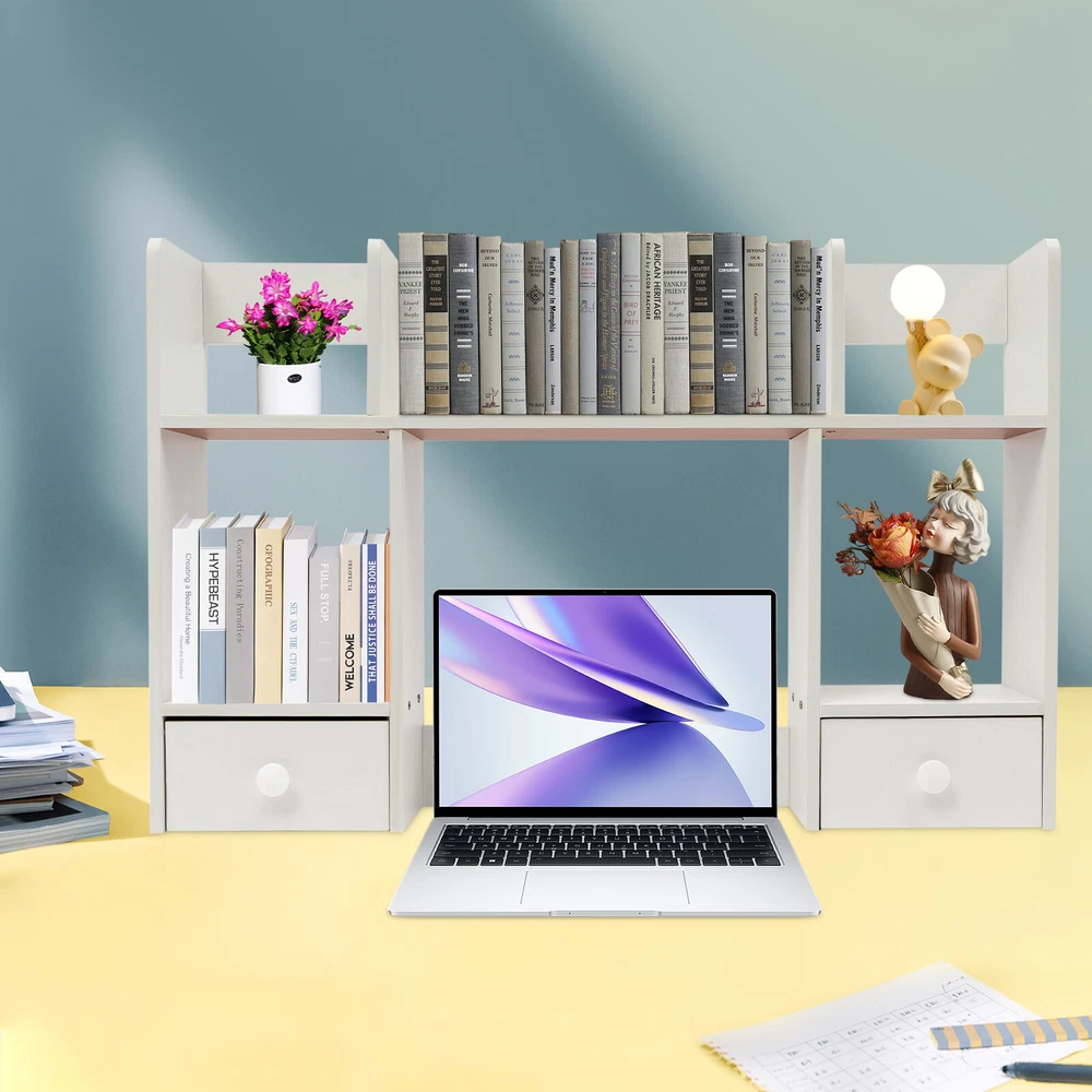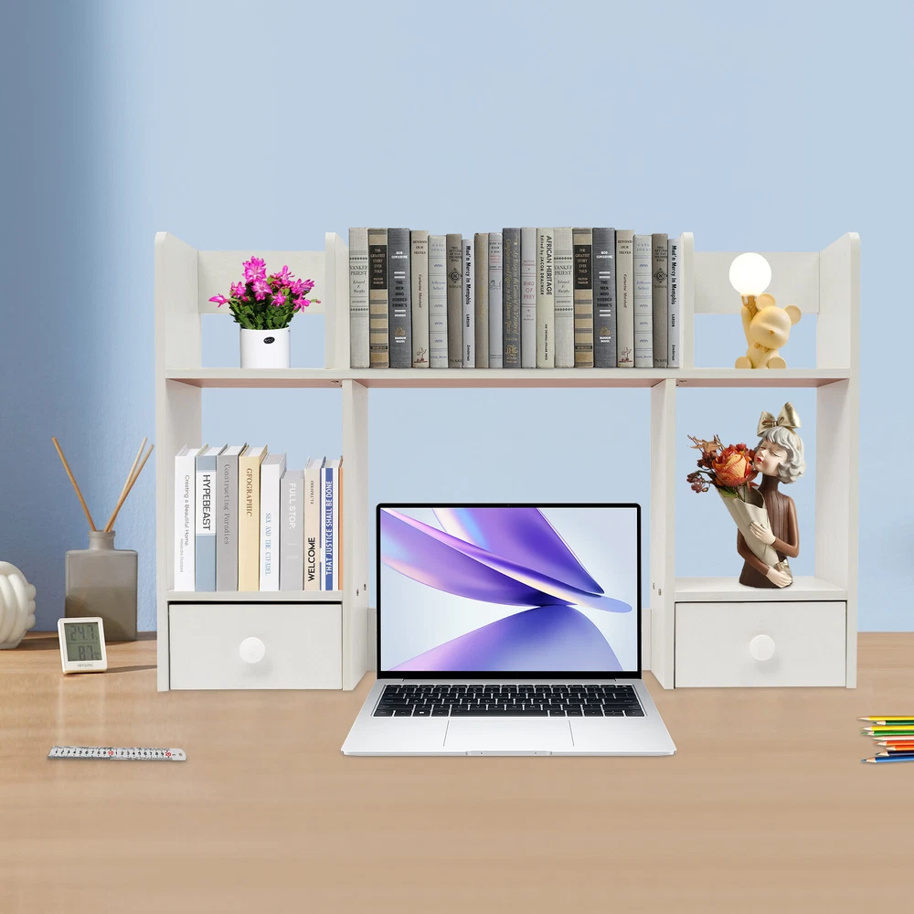 Specification Material: MDF, Particle Board Color: White Process: Polishing, Sanding Style: Modern Assembly Required: Yes Mounting Type: Tabletop Shape: Rectangular Height of Computer Display Area: 32cm/12.6in Partition Thickness: 16mm/0.63in Total Load Capacity: About 7.5kg/16.53lbs Product Size: 80*16*52cm/31.5*6.3*20.5in Package Size: 80*20*9cm/31.5*7.87*3.54in Gross Weight: 5kg/11.02lbs Net Weight: 4.5kg/9.92lbs Package Included 1* Desktop Storage Rack 1* Chinese Assembly Diagram Other Accessories for Assembly Description Desktop storage space is often limited, so if you're still struggling with this, please take a look at our desktop storage rack, which is an efficient organizing solution designed for desktops. It combines a rational space layout with a simple design style, aiming to provide your desktop with an organizing tool that is both beautiful and practical. Whether it's a desk, desk, or vanity, it's easy to handle. Key Features Made to Last: Made of high-quality MDF and particle board with polishing and sanding processes, it is impact-resistant and has a sturdy structure and smooth surface that is not easy to deform, ensuring long-term aesthetics and practicality. Storage Assistant: The product adopts reasonable double-tier three compartments and two drawers structure design, which can effectively help you categorize and store books, files, computers, cell phones, ornaments, green plants, etc., providing you with a clean and tidy desktop environment. Carefully Designed: This product is designed with a computer display area of 12.6 inches in height, making it easy for you to place your computer on the desk for your office working needs. Strong Load-bearing Capacity: The thickened partition (16mm), stable rectangular structure, and strong screw fixation give the product a strong load-bearing capacity (about 16.53 lbs), which can easily carry the weight of books, stationery, and so on. Thoughtful Design: The product is designed with three sides of raised enclosures, which can effectively prevent your items from falling. Easy Assembly: A simple structure and complete accessories allow you to finish the installation quickly and use it in a short time. Effortless Cleaning: It has a smooth surface and an open structure, so you only need to wipe the dust with a towel (not included). Ideal Gift: With good performance and a modern appearance, it can be used as an ideal housewarming gift for parents, friends, and lovers so that they can also enjoy a more convenient life. Good Customer Service: We aim to provide quality products and services. If you have problems, please feel free to contact us. We will reply and solve the problem for you as soon as possible. Details Drawer Handles: They provide convenience for you to pull out the drawer and get your items. Rounded Corners: The delicate edge treatment reduces bumping injuries and ensures the safety of your use. Application You can put this product in your kitchen, bathroom, workshop, or office to organize stationery, desk files, mail, tools, and more. Specification Material: MDF, Particle Board Color: White Process: Polishing, Sanding Style: Modern Assembly Required: Yes Mounting Type: Tabletop Shape: Rectangular Height of Computer Display Area: 32cm/12.6in Partition Thickness: 16mm/0.63in Total Load Capacity: About 7.5kg/16.53lbs Product Size: 80*16*52cm/31.5*6.3*20.5in Package Size: 80*20*9cm/31.5*7.87*3.54in Gross Weight: 5kg/11.02lbs Net Weight: 4.5kg/9.92lbs Package Included 1* Desktop Storage Rack 1* Chinese Assembly Diagram Other Accessories for Assembly Notes Please note that this product does not include items such as books and documents. Please allow the slight color difference caused by the shooting light and 1-3cm error due to manual measurement, and make sure you do not mind before ordering. On Nov 5, 2024 at 22:12:56 PST, seller added the following information: