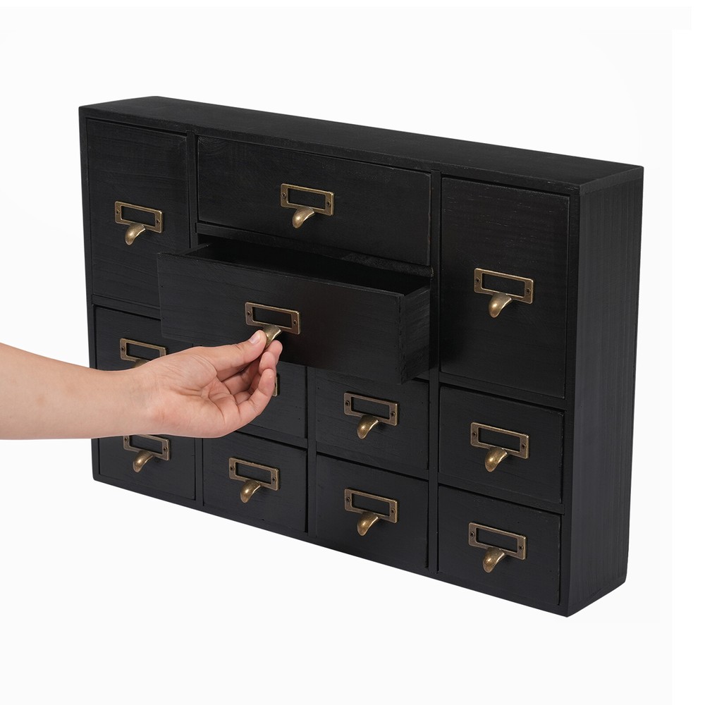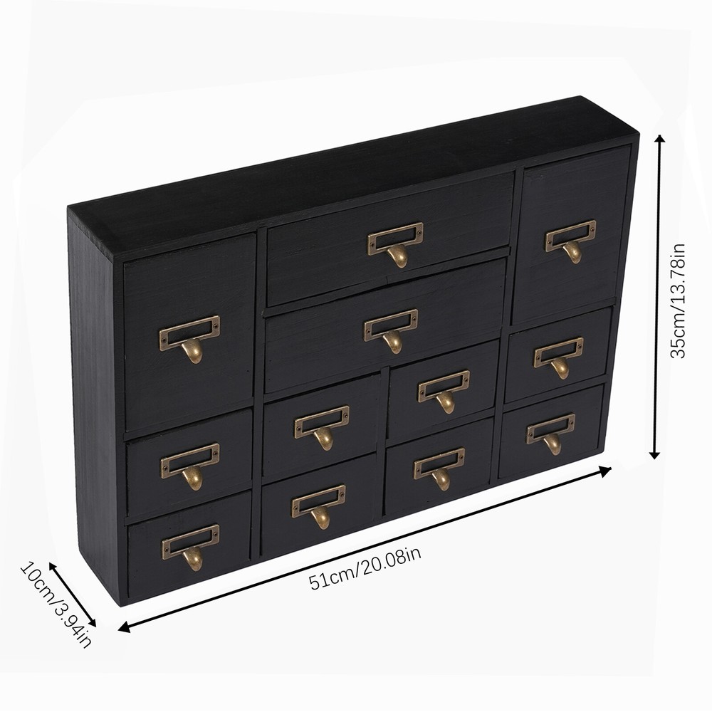 gtin13: Does not apply Country/Region of Manufacture: Unknown Item Length: As Shown Assembly Required: No Shape: Rectangular Color: Black UPC: Does not apply Number of Drawers: 12 Mount Type: Tabletop * Feature *: Compact Design,Unique Appearance Load Capacity: 10kg/22.05lbs Indoor/Outdoor Usage: Indoor Tips: If you have any questions, please contact us! Process: Spray Painting, Aging Product Size: 51*10*35cm/20.08*3.94*13.78in Brand: Unbranded Type: Storage Drawers Material: Plywood, Pine Wood, Zinc Alloy Gross Weight: 5kg/11.02lbs Item Height: As Shown Package Size: 54*38*14cm/21.26*14.96*5.51in Item Width: As Shown Net Weight: 4.5kg/9.92lbs