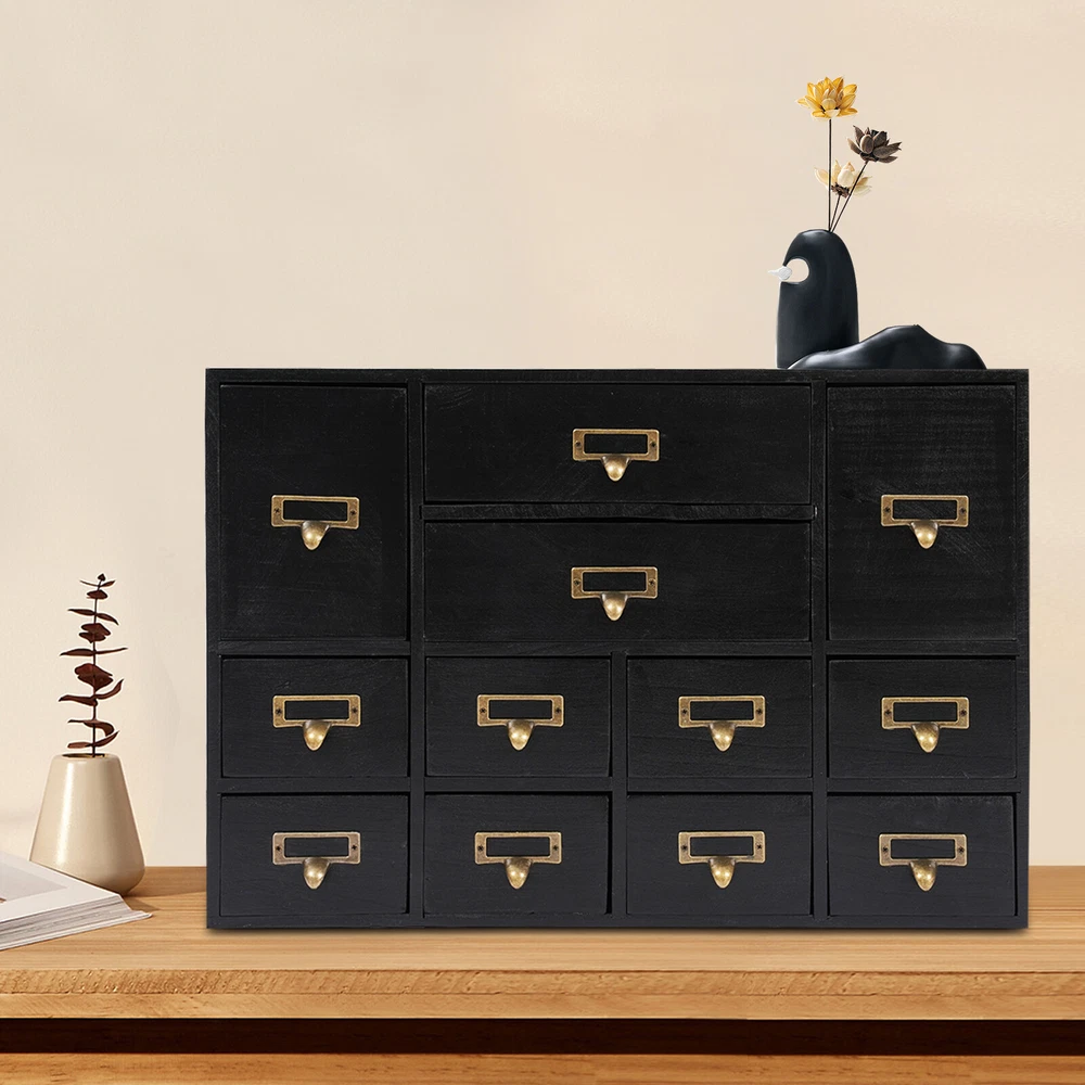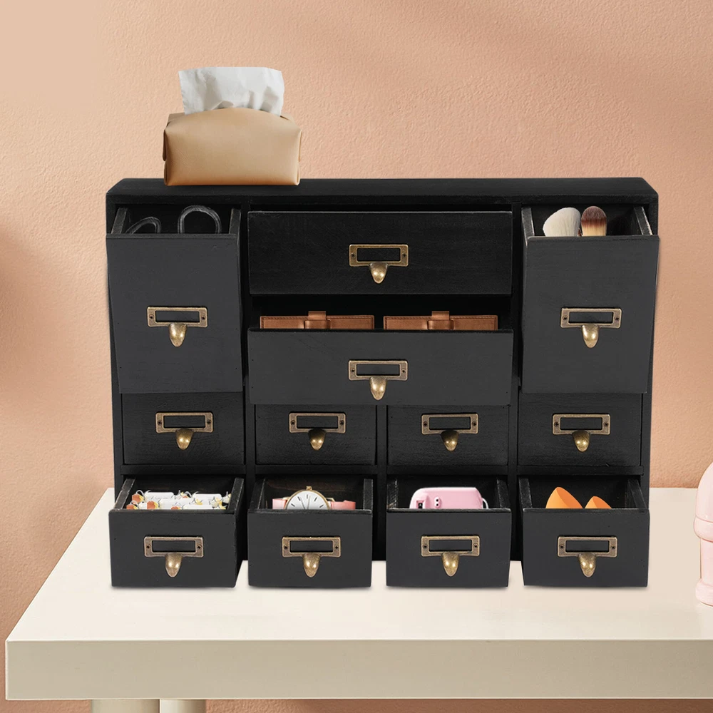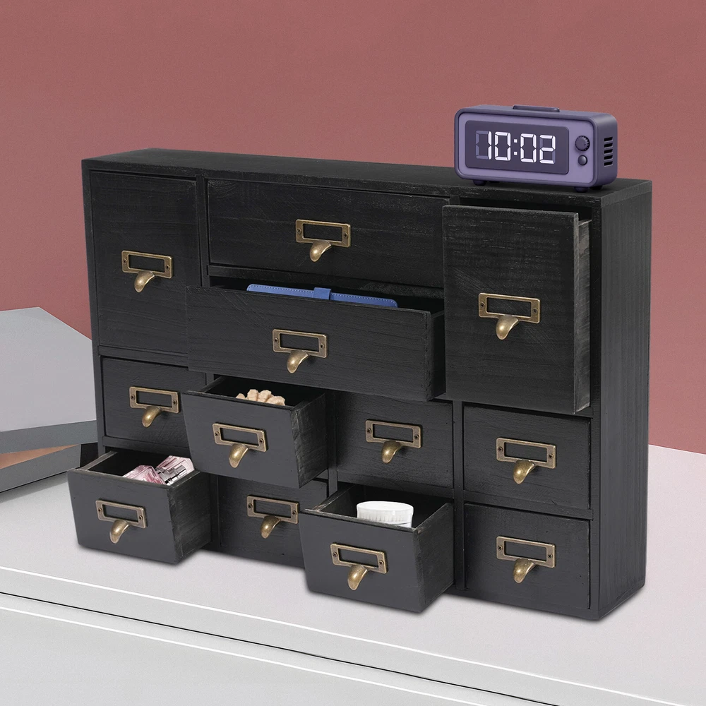 Desk Organizer with 12 Drawers Wooden Desktop Storage Cabinet Storage Box Case