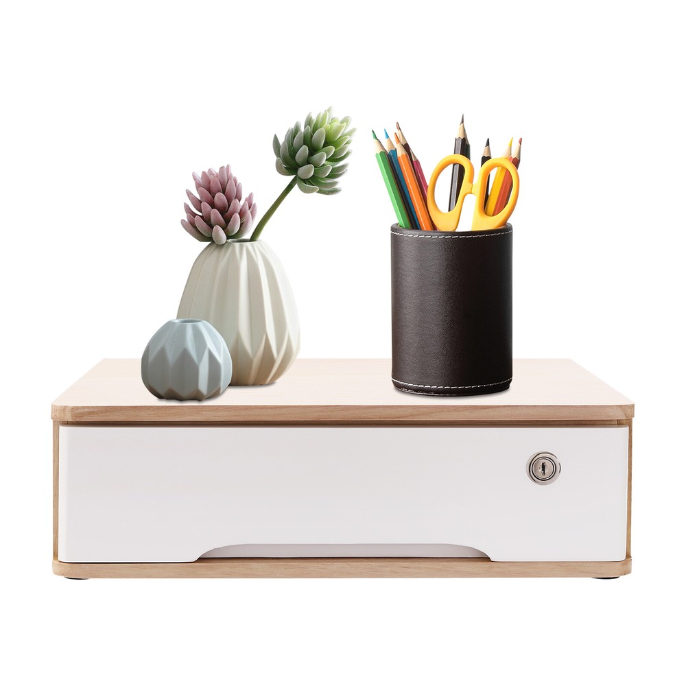 Desktop Storage Box w/ Lockable Drawer Wooden Office Supplies Drawer Organizer Description Do you need an organized space on your desktop? This desktop storage box is the solution you need. Whether you need to store your daily office supplies or personal items, it will meet your needs. The premium wood is durable and the simple construction allows for easy clean-up. The secure lock keeps your stored items away from prying eyes for your convenience. Own it and bring more comfort to your life! Key Features Quality and Sturdy: The product is made of high-quality wood, using oil-based painting technology, with high strength, and wear resistance , ensuring its beauty and long-time use. Storage Assistant: Its considerable capacity drawer can store files, medicines, and other daily necessities, creating a cleaner and tidier office and home environment for you. Meanwhile, the top platform can also place some potted plants, calendars, etc., making full use of the space. Minimalist Style: The original wood color and white with simple rectangular shapes and smooth lines creates a minimalist aesthetic, making it suitable for most office décor and adding a touch of sophistication to your room. Privacy Protection: The locking design ensures that stored items inside are secure and isolated from outside view, and comes with two keys so you don't forget them for your convenience. High Stability : The thickened material and flat rectangular construction give it excellent stability for storing a variety of items without tipping over. Easy to Clean: The smooth surface and angular structure design allow you to easily remove dust from the surface of the product with a towel. Ready to Use : What you receive will be an already assembled product, so you can use it directly, which is very convenient and time-saving. Nice Gift: This practical and beautiful product is a great holiday or housewarming gift for family, friends, and lovers so that they can enjoy a more exquisite life. Details Round Corners: They are burr-free, which is comfortable to touch, and can care for your skin. Recessed Handle: It helps you open and close the drawer conveniently. Non-slip Mat: 4 non-slip pads can be mounted on the bottom to prevent the product from sliding and avoid scratching the table. Application It can be placed in the office, study, dresser, and more to store stamps, sticky notes, paper clips, scissors, bills, pens, pencils, business cards, notepads, jewelry, hair accessories, etc. Specifications Color: Original Wood Color, White Style: Modern Shape: Rectangular Material: Wood Process: Oil-based Painting Mount Type: Tabletop Assembly Required: No Indoor/Outdoor Usage: Indoor Door Style: Drawer, Lock Number of Drawers: 1 Gross Weight: 3kg/ 6.61 lbs Product Size: 40*28*12cm/ 15.75*11.02*4.72 in Package Size: 45*33*17cm/ 17.72*12.99*6.69 in Package Included 1* Desktop Storage Box 2* Keys 4* Non-slip Mats Notes Please note that the log product is subject to wood knots, scabs, mineral threads, etc., but it's normal. Please make sure that you do not mind before purchasing. Please note that this product does not include files and other storage items. Please place the product flat and try to avoid direct sunlight, and please do not put the furniture directly on the air conditioning or warm side, to avoid deformation and cracking of the furniture by moisture. Please allow the slight color difference caused by the shooting light and 1-3cm error due to manual measurement and make sure you do not mind before ordering. Process Oil-based Painting Mount Type Tabletop Indoor/Outdoor Usage Indoor Door Style Drawer, Lock Number of Drawers 1 Gross Weight 3kg/ 6.61 lbs Product Size 40*28*12cm/ 15.75*11.02*4.72 in Package Size 45*33*17cm/ 17.72*12.99*6.69 in Brand Unbranded Item Height 4.72 in Item Length 15.75in Item Width 11.02in Type Desktop Storage Box Material Wood Features Lockable Color Original Wood Color, White Mounting Tabletop Assembly Required No Shape Rectangular Style Modern