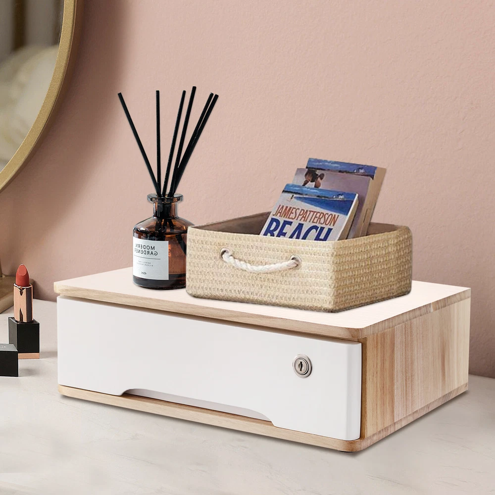Desktop Storage Box w/ Lockable Drawer Wooden Office Supplies Drawer Organizer Description Do you need an organized space on your desktop? This desktop storage box is the solution you need. Whether you need to store your daily office supplies or personal items, it will meet your needs. The premium wood is durable and the simple construction allows for easy clean-up. The secure lock keeps your stored items away from prying eyes for your convenience. Own it and bring more comfort to your life! Key Features Quality and Sturdy: The product is made of high-quality wood, using oil-based painting technology, with high strength, and wear resistance , ensuring its beauty and long-time use. Storage Assistant: Its considerable capacity drawer can store files, medicines, and other daily necessities, creating a cleaner and tidier office and home environment for you. Meanwhile, the top platform can also place some potted plants, calendars, etc., making full use of the space. Minimalist Style: The original wood color and white with simple rectangular shapes and smooth lines creates a minimalist aesthetic, making it suitable for most office décor and adding a touch of sophistication to your room. Privacy Protection: The locking design ensures that stored items inside are secure and isolated from outside view, and comes with two keys so you don't forget them for your convenience. High Stability : The thickened material and flat rectangular construction give it excellent stability for storing a variety of items without tipping over. Easy to Clean: The smooth surface and angular structure design allow you to easily remove dust from the surface of the product with a towel. Ready to Use : What you receive will be an already assembled product, so you can use it directly, which is very convenient and time-saving. Nice Gift: This practical and beautiful product is a great holiday or housewarming gift for family, friends, and lovers so that they can enjoy a more exquisite life. Details Round Corners: They are burr-free, which is comfortable to touch, and can care for your skin. Recessed Handle: It helps you open and close the drawer conveniently. Non-slip Mat: 4 non-slip pads can be mounted on the bottom to prevent the product from sliding and avoid scratching the table. Application It can be placed in the office, study, dresser, and more to store stamps, sticky notes, paper clips, scissors, bills, pens, pencils, business cards, notepads, jewelry, hair accessories, etc. Specifications Color: Original Wood Color, White Style: Modern Shape: Rectangular Material: Wood Process: Oil-based Painting Mount Type: Tabletop Assembly Required: No Indoor/Outdoor Usage: Indoor Door Style: Drawer, Lock Number of Drawers: 1 Gross Weight: 3kg/ 6.61 lbs Product Size: 40*28*12cm/ 15.75*11.02*4.72 in Package Size: 45*33*17cm/ 17.72*12.99*6.69 in Package Included 1* Desktop Storage Box 2* Keys 4* Non-slip Mats Notes Please note that the log product is subject to wood knots, scabs, mineral threads, etc., but it's normal. Please make sure that you do not mind before purchasing. Please note that this product does not include files and other storage items. Please place the product flat and try to avoid direct sunlight, and please do not put the furniture directly on the air conditioning or warm side, to avoid deformation and cracking of the furniture by moisture. Please allow the slight color difference caused by the shooting light and 1-3cm error due to manual measurement and make sure you do not mind before ordering. https://image.pushauction.com/0/0/548d9de0-d28e-4a5a-9f1b-de1fd6e274a4/dfe4bf42-f598-4c65-b86e-6b20ea8cd11c.JPG Payment Delivery details Terms of sales About us Contact us Payment We accept ebay payment 。 Fees such as import duties, taxes are not included in the item price or shipping costs. These charges are the buyer's responsibility. Delivery details Shipping: 2-9 working days to: USA Terms of sales We maintain high standards of excellence and strive for hundred percent customer satisfaction. Feedback is very important to us. We hope that you contact us immediately before you give neutral or negative feedback, so that we can address your concerns. It is impossible to address issues if we do not know about them! About us Your satis faction is our ultimate goal. We work hard to earn your trust and future business. Our certified technicians have tested each item before shipping. The unit comes with 1 year limited warranty on all manufacturing defects. a) If you receive a defective item, you may return it or ask for a discount. Please contact us within 14 days after you receive the package. b) What you returned must be intact and in its original packaging as re? u. Customer is responsible for shipping costs of the returned item. c) We will cover the cost of shipping back t with the shipping rate indicated in the registration page. We will send you a new unit or refund the full payment you paid. Thank you. Contact us Business Hour Business Hour: Monday To Friday: 8:30 AM to 5:00 PM (Beijing China time) Due to time zones, our reply to your questions may not be immediately. But within above working time, we will reply your email within 24 hours. If it's non-workdays, please kindly be patient and wait till Monday. Please contact us with ebay message. Please feel free to contact us if you have any questions. Monday To Friday: 8:30 AM to 5:00 PM (Beijing China time) Due to time zones, our reply to your questions may not be immediately. But within above working time, we will reply your email within 24 hours. If it's non-workdays, please kindly be patient and wait till Monday. Please contact us with ebay message. Please feel free to contact us if you have any questions. Process Oil-based Painting Mount Type Tabletop Indoor/Outdoor Usage Indoor Door Style Drawer, Lock Number of Drawers 1 Gross Weight 3kg/ 6.61 lbs Product Size 40*28*12cm/ 15.75*11.02*4.72 in Package Size 45*33*17cm/ 17.72*12.99*6.69 in Brand Unbranded Item Heigh