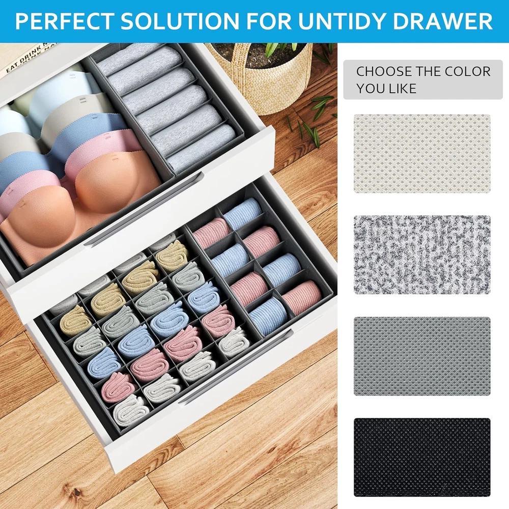 Menu Other Items Feedbacks About Us Contact Us Add To Favorites Drawer Organizer Clothes - Foldable Underwear Organizer and Sock Organizer, Sock Drawer Organizer Divider Fabric Dresser Drawer Organizer for Socks, Bra, Underwear, Tie, 4 Pack, Grey 【Versatile & Efficient】Our clothing drawer organizer is perfect for keeping your socks, underwear, ties, t-shirts, lingerie, belts, neatly organized in your drawers. Say goodbye to messy drawers and easily find what you need with these multifunctional dresser organizer 【Multiple Sets】Our set includes a large empty storage bins and a 24-grid sock organizer measuring 12.9x12.9x3.5 inches, larger than similar products. Additionally, we offer 8-grid tie organizer and 6-grid underwear organizers measuring 11.8x5.9x3.5 inches. Perfect for any space, like your wardrobe, shelves, drawers and bedroom 【Foldable & Easy to Install】Our drawer organizers for clothing features a foldable design with a zipper on the bottom, making it incredibly easy to assemble. When not in use, the closet organizers can be folded up and easily stored without taking up much space 【Premium Material】Made from high-quality non-woven fabric, our dresser drawer organizers are built to last. the clothing organizer is supported by sturdy boards on four sides, preventing deformation and ensuring long-term durability 【Fine Stitching & Reinforced Edges】We pay attention to every detail, ensuring our sock drawer organizer divider is finely stitched and reinforced along the edges. This design provides extra strength and prevents tearing, guaranteeing its durability over time Product Description A perfect combination 4 Set will keep your bedroom neat and tidy. Bra storage Underwear storage box Socks storage box Tie storage box The bottom zipper design provides stronger support for the entire product. Open storage Placing the drawer storage box under an open clothes rack can provide an additional storage area. Make the room more spacious and convenient for you to pick up clothes. Wardrobe storage The combination of wardrobe and storage box is a perfect match, and partitioned storage can make drawers and wardrobes more tidy. Drawer storage Placing the storage box in the drawer can better partition the products in the drawer and maintain cleanliness. Don't worry about the drawers being messy anymore. Keep clothes clean and tidy Dividing different clothes into different areas is beneficial for picking them up. Item Specification Item model number organizer Number of Items 4 Country of Origin China Batteries Included? No Batteries Required? No Finish no Material nonwoven Package Type Standard Packaging Finish Type no Specific Uses For Product Organize items Item Package Quantity 1 Mounting Type assembly and installation Item Weight 0.5 Kilograms Item Weight 1.1 pounds Special Features Foldable Special Feature Foldable Number of Compartments 24 Unit Count 4.0 Count Color Grey Shape Rectangular Included Components Set of drawer organizers Product Dimensions 11"D x 11"W x 3"H Size 4 Pack Dimensions Shipping Returns Additional Info Product Dimensions: 11.0 "h x 11.0 "h x 3.0 "h. Weight: 1.1 lb Fast shipping is very important for us. Our standard shipping service is FREE. Your order will be shipped within 1-3 business days upon full payment received. Most items are delivered within 3-5 business days, however, please allow 3-10 business days. We are shipping only to USA. We only ship to the confirmed Paypal address. We reserve the right to cancel any order for any reason at any time. We are not responsible for undeliverable addresses. We offer a 30 day return policy from checkout winning date. Your satisfaction is guaranteed! If for any reason you are unhappy with your item, just return it within 30 days for a full refund, minus shipping cost. Please contact us prior to initiating a return so that we can issue you a refund authorization. Items defective upon receipt must be packaged in their retail packaging as if new and returned with a detailed description of the problem. Return shipping fees are not refundable. We reserve the right to decline any returns if the above guidelines are not followed. All of our items, unless otherwise stated, will only run on 120 volts. Please check to make sure your country complies with these specifications. If you have a problem or question regarding your transaction please contact us before leaving any type of feedback. We will work with you to resolve any problem you may have.