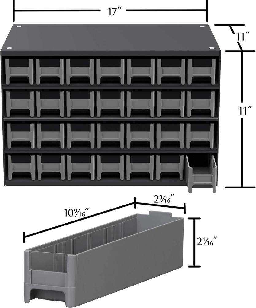 Durable 28-Drawer Garage Storage Cabinet Organizer for Tools and Hardware ‹ › ‹ › ‹ › ‹ › ‹ › ‹ › ‹ › ‹ › ‹ › ‹ › Durable 28-Drawer Garage Storage Cabinet Organizer for Tools and Hardware HIGH QUALITY : Constructed with a robust 24-gauge welded steel frame and topped with a chip-proof, durable powder-coated finish, this stackable tool storage cabinet is designed for longevity. It features keyhole slots on the back for easy wall mounting, ensuring stability whether on a workbench or wall. VERSATILE : This multifunctional metal storage organizer is perfect for any setting. Ideal for personal or professional use, it seamlessly transitions from a garage storage cabinet to a medicine cabinet organizer, dentist tools supply cabinet, craft storage, school supplies drawers, and even a Lego organizer. The possibilities are endless! DIVIDIBLE DRAWERS : Maximize organization with 28 drawers, each capable of being divided into eight compartments using any of the 56 included dividers. The unique dovetailed design provides a secure fit, and the rear stop tab on each drawer prevents spills and lost materials. DIMENSIONS : Each cabinet measures 17-Inches x 11-Inches x 11-Inches and contains 28 high-impact plastic drawers. These drawers are rust, corrosion, and dent-proof, measuring 2-3/16-Inches x 2-1/16-Inches x 10-9/16-Inches, making them spacious enough to accommodate everything from small screws to larger tools. STACK OR HANG : Designed for flexibility, the stackable storage cabinet can be easily wall-mounted thanks to keyhole slots in the back. Alternatively, it fits perfectly on Louvered Panels or ProCart when paired with Model 98400 Mounting Brackets (sold separately). Organize Your Space Transform your clutter into order with this exceptional Garage Storage Cabinet Organizer. Perfectly suited for workshops, garages, workbenches, warehouses, offices, or trucks, it excels at storing screws, nuts, tools, keys, and more. With its sleek charcoal gray finish and strong, high-impact plastic drawers, you can easily identify contents thanks to molded-in label holders and transparent windows. The angled front of each drawer ensures easy access to small parts, while additional dividers (sold separately) enable even greater customization. Embrace a clutter-free environment—order your Durable 28-Drawer Garage Storage Cabinet Organizer today and experience the joy of organized living! Shipping Free & Fast Shipping - We offer free shipping to most of the USA with a normal delivery time of 3-10 businessdays. However, due to various situations, additional delivery time (up to 3 weeks) may be required for some items. Alternative Carriers - We may use alternative carriers (e.g. USPS, FedEx, UPS, etc.) to ensure your package arrives safely and on time. Due to the use of multiple carriers, we are unable to provide a tracking number automatically. Handling Time - Orders are processed and shipped within 1-5 business days of receiving cleared payment. Shipping Restrictions - Shipping to Alaska, Hawaii, Puerto Rico, Guam, and other US territories may incur shipping charges or delivery restrictions. Please contact us before ordering, or your order can be refunded/cancelled. State Restrictions - There may be restrictions based on your state of purchase. For example, certain items may not be shipped to California due to state regulations. Contact for Tracking Updates - If you require tracking updates or have any concerns about the delivery of your order, please feel free to contact us, and we will be happy to assist you. Return Please see our ebay return policy. We do not accept return on most products. This is to avoid customers mis-using ebay returns. All sales are final. Please be sure to check the return policy listed at the top of the listing. In rare cases, we may accept returns, if the buyer pays both ways shipping and 20% restocking fee. If you are un-sure of return policy of a particular item, please ask before buying. Payment We accept all major credit cards, PayPal, and Apple Pay for your convenience. Your payment information is secure and encrypted to ensure a safe and seamless transaction. Please complete your payment within 3 days of purchase to avoid any delays in shipping. Feedback Your feedback is extremely important to us. We strive to provide the best products and customer service possible. If you are satisfied with your purchase, please take a moment to leave us a positive review. If you have any concerns or issues with your order, please contact us before leaving negative feedback. We are committed to resolving any problems and ensuring your satisfaction. Contact Us If you have any questions or concerns, please feel free to reach out to our customer support team. You can contact us through the eBay messaging system. We are available Monday to Friday, 9:00 am to 5:00 pm EST, and we will do our best to respond to your inquiry within 24 hours. Buy it now and enjoy a pleasant shopping experience! UPC: Not Set Unit Quantity: 19.7 lb Features: Heavy Duty,Lidded,Stackable,With Compartments,Wall Mounted,With Labels Material: Metal,Plastic,Steel,Powder Coated Mounting: Wall Mounted Theme: Not Set Brand: Unbranded Item Height: Storage Cabinet Organizer Item Length: Storage Cabinet Organizer Item Width: Storage Cabinet Organizer Type: Storage Cabinet Number of Items in Set: 1 Capacity: 81 - 120 Quarts Item Depth: 11 in Item Weight: 19.7 lb MPN: Not Set Model: Not Set Finish: Powder Coated Color: Gray Country/Region of Manufacture: Not Set Number in Pack: 1 Number of Compartments: 28 Original/Reproduction: Not Set Pattern: Not Set Shape: Rectangle Size: Large Style: Industrial Unit Type: lb Assembly Required: Not Set Personalize: Not Set