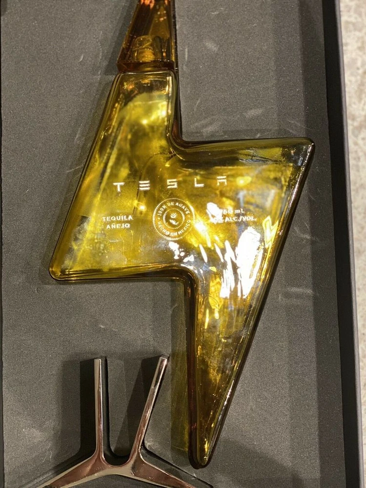 ️EMPTY TESLA TEQUILA BOTTLE + STAND + BOX LIMITED IN HAND FAST SHIP Elon Musk IT