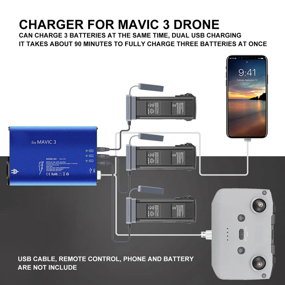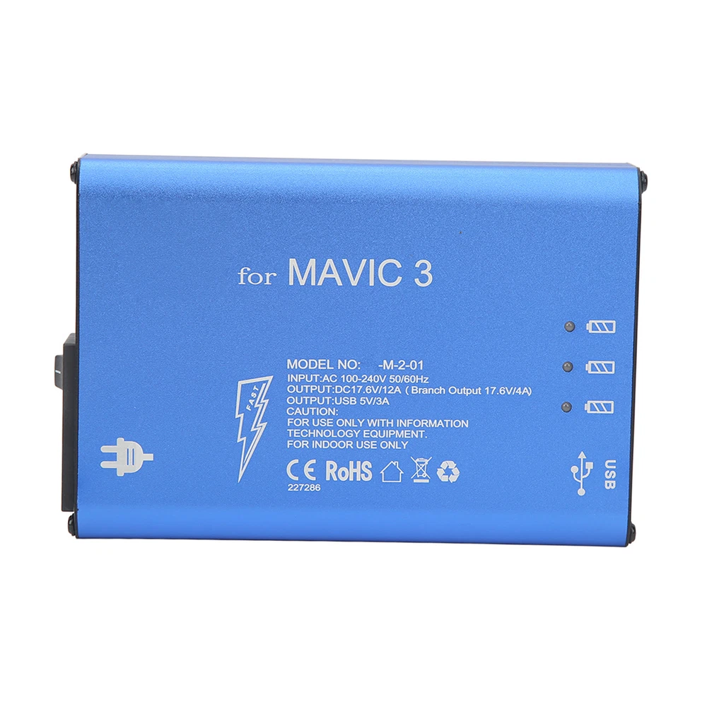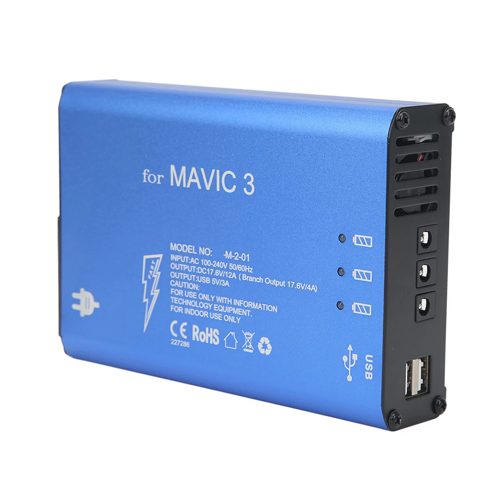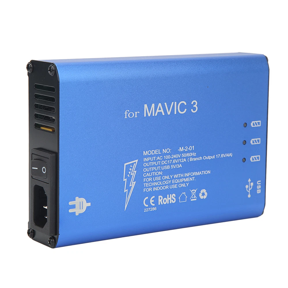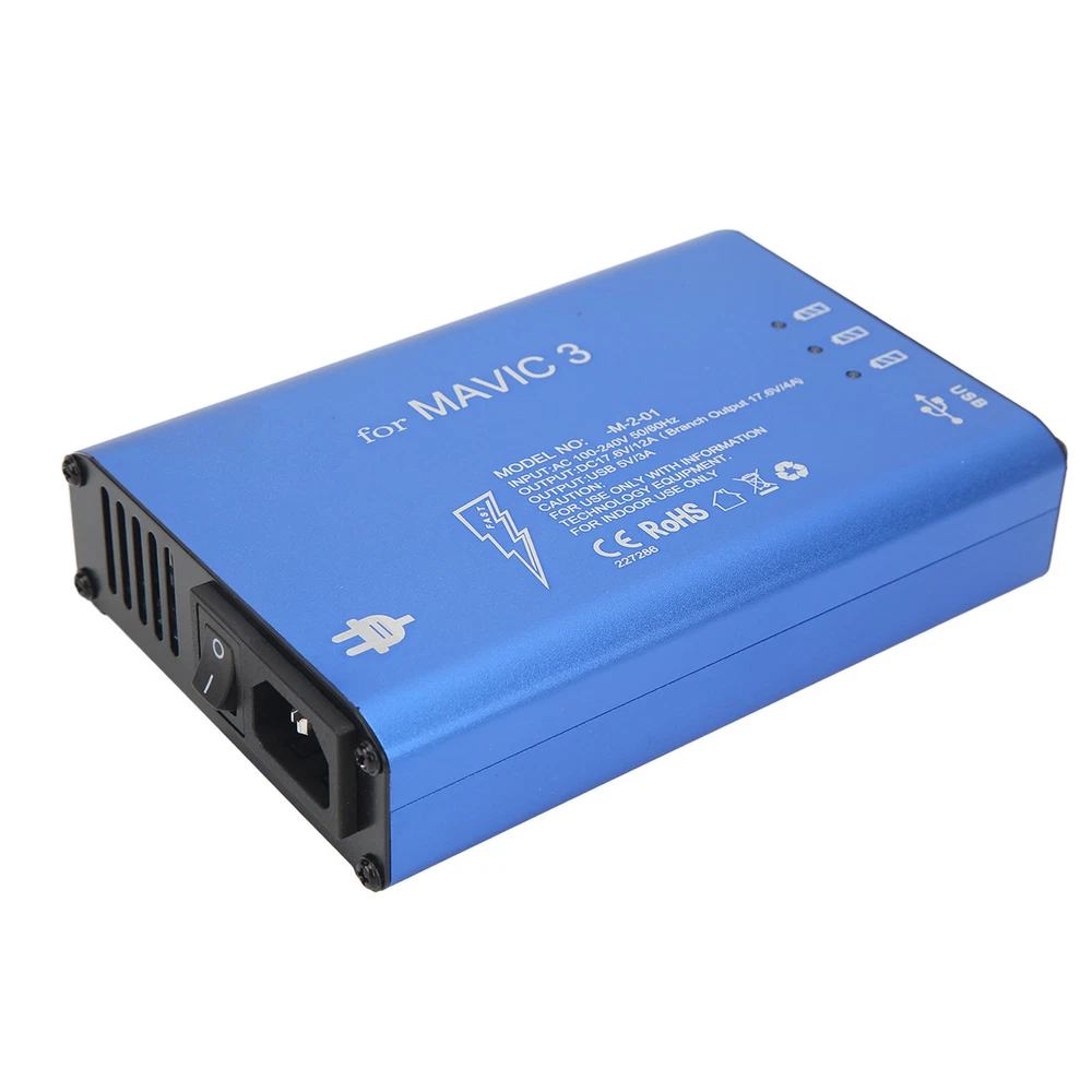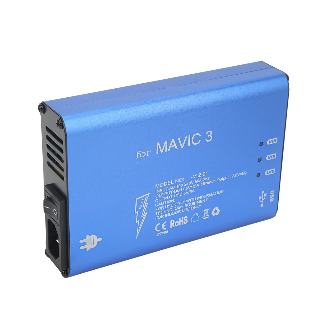 Feature: 1. Premium Material: Made of premium aluminum alloy for shell and electronic components, the drone battery charger is , , practical, safe and assured for you to use. 2. Suitable: The blue drone battery charger is suitable for 3, you can use it for charging corresponding unmanned aerial vehicle to meet your needs. 3. Efficient: The drone aluminum alloy battery charger can charge three batteries and a remote control at the same time, takes about 90 minutes to fully charge 3 batteries. 4. Safe: The shell of drone charger with switch is anodized, non conductive and grounded. The built in safety system protects the charger from overcharge, overvoltage and short circuit. 5. Cooling Fan: The UAV charging tool has built in cooling exhaust fan, effectively reduce internal heat, prevent high temperature when charging. Specification: Item Type: Drone Battery Charger Material: Aluminum Alloy for Shell, Electronic Components Weight: Approx. 900g/1.98lb Color: Blue Output: DC 17.6V, 12A (Each Channel 17.6V, 4A) USB Output: DC 5V, 3A (Each Channel 1.5A) Charging Time: It Takes About 90 Minutes to Fully Charge 3 Batteries Suitable: For 3 Package List: 1 x Drone Battery Charger 3 x Battery Charging Cable 1 x Power Supply Cable 1 x Use Manual 1. Our listing price includes the value of goods,packaging cost,and export taxes,not including international duties. 2. duties,taxes,and charges are not included in the item price or shipping fee. 3. T he duties are buyers' responsibility .Please check with your country's customs office determine what these additional costs will be prior to your purchase. 4. All disputes arising from the duties will be submitted to ebay for solution. 1. Any questions, pls. contact us via ebay message or email us. We will reply your message within 48 hours. If you do not receive our reply within 48 hours, pls. post a message again because sometimes our message system may block some emails. 2. If you are satisfied with our service, pls. kindly leave us a positive feedback and give us the Detailed Seller Rating with all " 5 " in very area 3. Our aim is to provide Level Customer Service, your recognition will encourage us greatly and serve you better. We strive to keep all our customers satisfy. We will do our up most to exceed your expectations in customer service, communication and dispatching of your orders. On Mar 2, 2025 at 19:36:43 PST, seller added the following information: