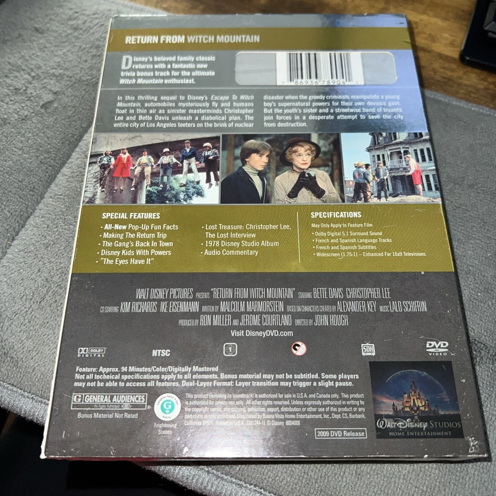 Actor:Bette Davis, Christopher Lee, Ike Eisenmann, Kim RichardsMovie/TV Title:Return from Witch MountainSub-Genre:Live-ActionRating:GGenre:Children's & Familygtin13:0786936789041Format:DVDUPC:0786936789041Release Year:2009Director:John Hough