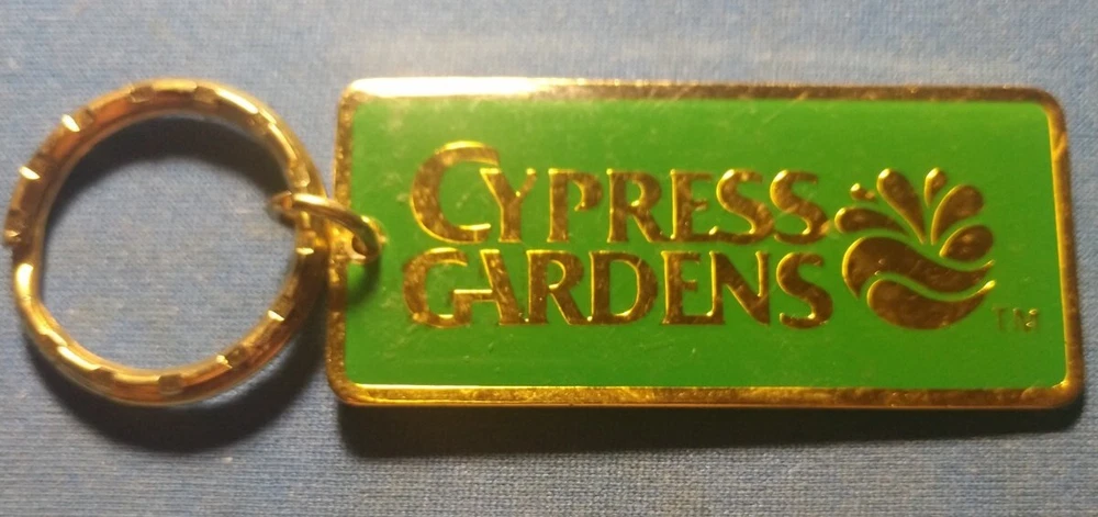 This rare key tag from Cypress Gardens, Florida is a must-have for any collector. With its vibrant green color and iconic design featuring a famous place, it's the perfect addition to any keyring. Made of durable metal and hard plastic and featuring a detachable keyring, this key tag is both functional and stylish. Its era of modern design and unknown country/region of manufacture only add to its uniqueness. Don't miss out on the chance to own this one-of-a-kind piece of memorabilia. See scans to help determine the condition.