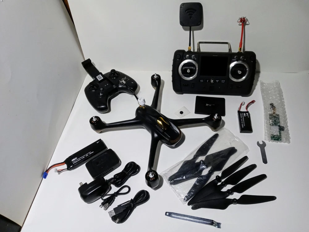 Yet again Re listing due to previous bidder not paying. Tested an works ! Used but in new shape well taking care of ! This is not a stock plain jane hubsan The drone has had an antenna mod done to run ext antennas for longer range. battery door notched for easy access. The stock board has been upgraded to the x501a x4 air pro wifi one. Stock board (no wifi) and camera included. 2 sets of props 1 new 1 used. Prop wrench 2 remotes 1 game pad style with phone holder other is fpv with screen and sun shade The fpv remote has a battery mod so no more double a"s. Just recharge pack 2 batteries 1 for drone 1 for fpv remote. The game pad takes 4 triple a Miscellaneous cables an antennas for the drone Camera filter/lens Will come with everything in pictures Experience the ultimate in aerial photography with this Hubsan X501a X4 Air Pro Board quadcopter drone. Equipped with a high-quality camera, this drone can capture stunning images from a bird's eye view. With a maximum control range of 984ft. (300m), you can easily control the drone's movements and enjoy first-person visual (FPV) viewing. The Hubsan X501a X4 Air Pro Board is ready to go right out of the box, making it perfect for beginners and experts alike. It comes in a sleek black color and is made of durable plastic material. Other features include headless mode, WiFi control, low battery alarm, and GPS tracking. This hobby-grade drone is ideal for those aged 17 years and up who love to explore the skies.