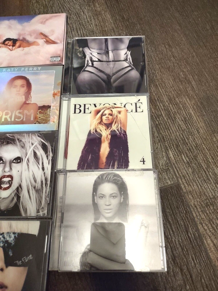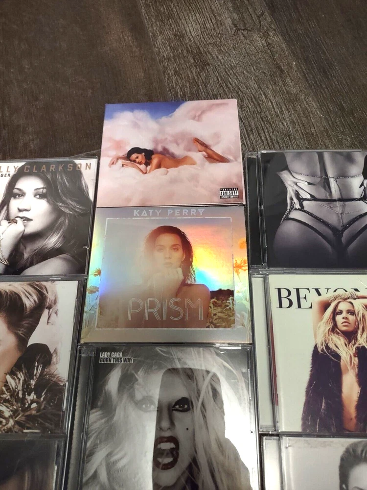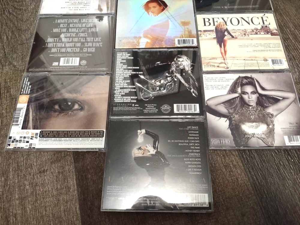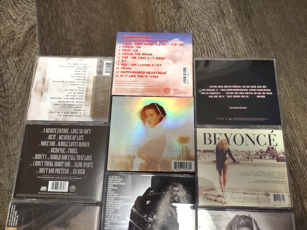 All items in great pre-owned condition. BXZ5 CD lot contains: Katy Perry "Teenage Dream" Digipak Trifold packaging Capitol Records 2010 UPC 5099968460129 Two bonus tracks not listed Katy Perry "Prism" Digipak Capitol Records 2010 UPC 602537532339 Lady Gaga "Born This Way" - Deluxe Edition (2CDs) Interscope 2011 UPC 602527701639 w/ 5 previously-unreleased remixes Lady Gaga "The Fame" Interscope 2008 UPC 602517891388 Kelly Clarkson "Breakaway" RCA Records 2004 UPC 828766449129 Kelly Clarkson "Meaning Of Life" Atlantic Records 2017 UPC 075678659843 Kelly Clarkson "Stronger" RCA Records 2011 UPC 886979618022 Beyonce "4" 2011 Columbia 88697908242 UPC 886979082427 "I Am Sasha Fierce" 2 CD 2008 Columbia – 88697 40980 2 UPC 886974098027 "Beyonce" (CD/DVD) 2013 Columbia 88843032512 UPC 888430325128