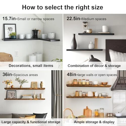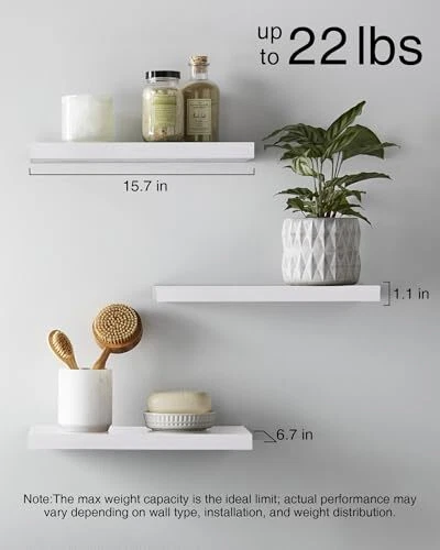 Return Policy Fast Delivery Trusted seller Floating Shelves for Wall, Wall Mounted Rustic Wood Shelves for Bathroom, Bedroom, Living Room, Kitchen, Hanging Shelf for Books/Storage/Room Decor with 22lbs Capacity (White, Set of 3, 15.7in) Product Description Engineered Wood Modern & Simplistic - Create a personalized display with our sleek wooden floating shelves that offer a contemporary design Protection Sealing - Each shelf is treated with a protective sealant to prevent warping or damage Versatile Design - These shelves can be easily placed in any room, from your cozy bedroom to your functional kitchen or home office Increased Load-Bearing - Our shelves can hold up to 22 lbs, allowing you to display your favorite objects with confidence Larger Size - Measuring 16 inches in length, our shelves provide ample space for both storage and decoration NOTE:For wooden or brick walls, use the included hardware. For drywall, please purchase the appropriate hardware separately. Shipping Returns Payment Shipping Shipping is FREE to all addresses other than APO/PO boxes in the lower 48 states. All our stock ships from US-based warehouses. Shipped via USPS or UPS (depending on location and package weight) Unless stated otherwise, all orders will ship within 24-72 hours of your payment being processed. Check our feedback to see the great reviews of FAST shipping we offer. Returns Seller does not accept returns Payment We currently accept payment via eBay managed payments only. Once payment is cleared, we will dispatch your shipment within 1-3 business days. Please refer to the "Shipping" tab for more information regarding shipping speed to your destination.