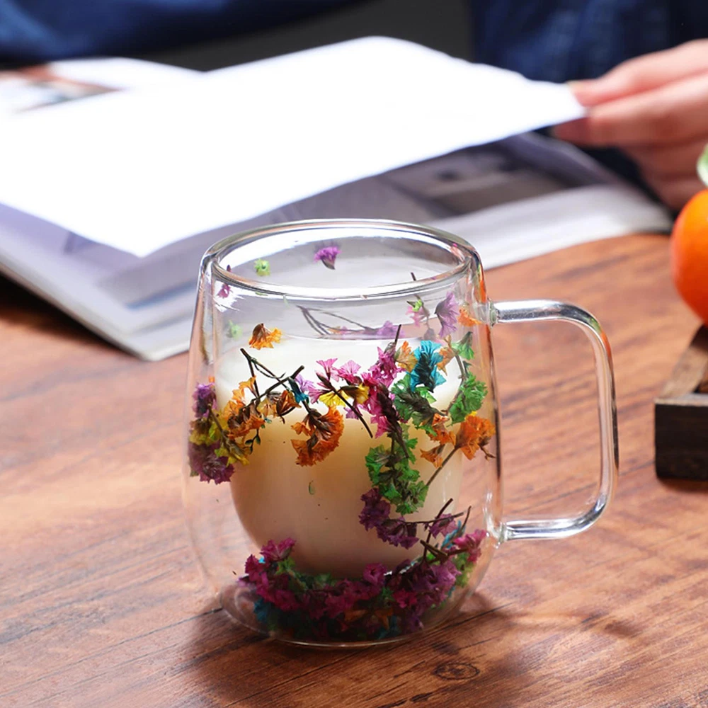 I absolutely love this floral double-wall glass cup! It keeps my tea hot without burning my hands, and the beautiful dried flowers inside make every sip feel special. Perfect for gifting or treating yourself—sturdy, stylish, and so cozy to hold. Great for coffee or tea lovers!
