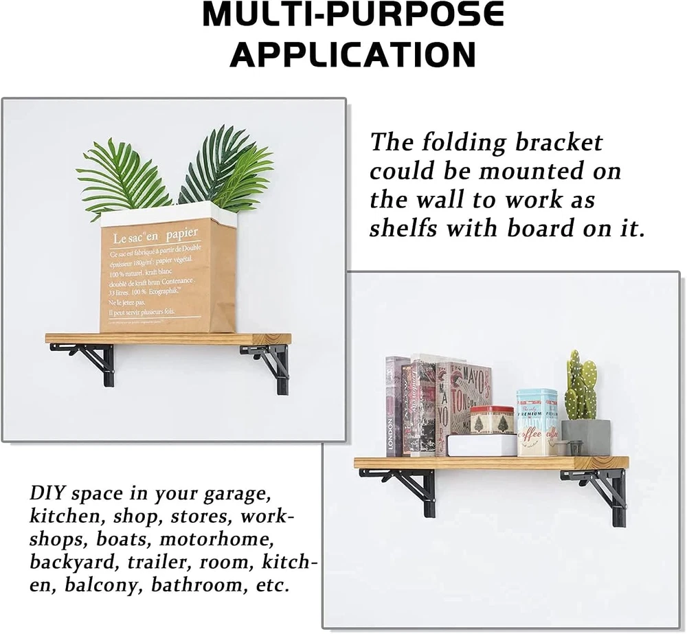 Store New Arrivals Add to Favorite View Feedback Contact Folding Shelf Brackets - 8 Inch 2 Pcs Heavy Duty Metal Collapsible Shelf Bracket, DIY Wall Mounted Foldable Shelf Bracket, Space Saving for Bench Table Description Item model number 1 Part Number 1 Batteries Required? No Finish Powder Coated" or "Lacquered Mounting Type Wall Mount Color Black Item Depth 7.87 inches Product Dimensions 7.87 x 1 x 4.53 inches Material Metal Country of Origin China Item dimensions L x W x H 7.87 x 1 x 4.53 inches Item Weight 1.3 pounds Batteries Included? No Size 8 Inch- 2 Packs Material Type Metal Finish Type Powder Coated" or "Lacquered Included Components 1 【MULTI-PURPOSE APPLICATION】: The wall shelf brackets could be mounted on the wall to work as shelfs with board on it, can allow more DIY space in your garage, kitchen, shop, stores, workshops, boats, motorhome, backyard, trailer, room, kitchen, balcony, bathroom, etc. 【SPACE SAVING & FOLDABLE】: Collapsible shelf brackets lock at 90 degrees, simply press the release arm to collapse the table. Excellent locking & fold performance of the wall folding table brackets meet the limited room's space saving and stuff sorting needs. 【STURDY & DURABLE】: 7.9 inch x 4.2 inch. The foldable shelf adopt the sturdiest triangle structure in wall bracket's construction, holds great weights up to 133 lbs per pair. Ideal for making workstation in garage, folding table hinge for kids' study table, bench in backyard, clothes table in laundry room, bookshelf, kitchen shelf, exhibition stand, etc. 【HIGH QUALITY】: The Folding Shelf Bracket is made of high-quality metal which ensures the durability and hard-wearing. Black painted surface, aim to resist daily scratches, corrosion and tarnishing, also meet the needs of aesthetic. 【EASY INSTALLATION PACKAGE】: 2 shelf bracket, 6 short screws,6 long screws, 6 expansion anchors. Need no additional accessories. Just make sure the two bracket are parallel to each other and perpendicular to the wall. Product Description ABOUT US We offer the best prices around on high quality products. Our E-store includes media such as books, movies, music and games while offering electronics, toys, sporting apparel, clothing, tools, general home, garden items and more. SHIPPING We are always working hard to ensure your package arrives as soon as possible. Please understand that some factors like weather, high postal traffic, and the performance of shipping companies are outside of our control. We offer free shipping to the lower 48 states and ship within 2 business days of payment, usually sooner. We do not accept P.O. Boxes. Please provide a physical address. For shipping outside of the continental USA, we only use eBay's Global Shipping Program.The item is shipped to KY and then sent to the rest of the world. International customers are responsible for all duties and taxes. Continue to check out in order to calculate costs for shipping the item to your country. Messages regarding eBay's Global Shipping Program MUST be directed at eBay EXCLUSIVELY. RETURNS We offer a 30-Day Return Policy on items which you are not completely satisfied with. You have the option for a full-refund or an exchange of the item. No returns are available on items shipped outside of the USA. PAYMENT We accept PayPal. CONTACT US This page content is yet to come Please ad us to your favorite seller and visit again later Thank You CUSTOMER SATISFACTION We try our very best to make sure every customer is completely satisfied. If there's a problem, message us! We're happy to help. WE ACCEPT Copyright © 2021 AutoDS. | All Rights Reserved
