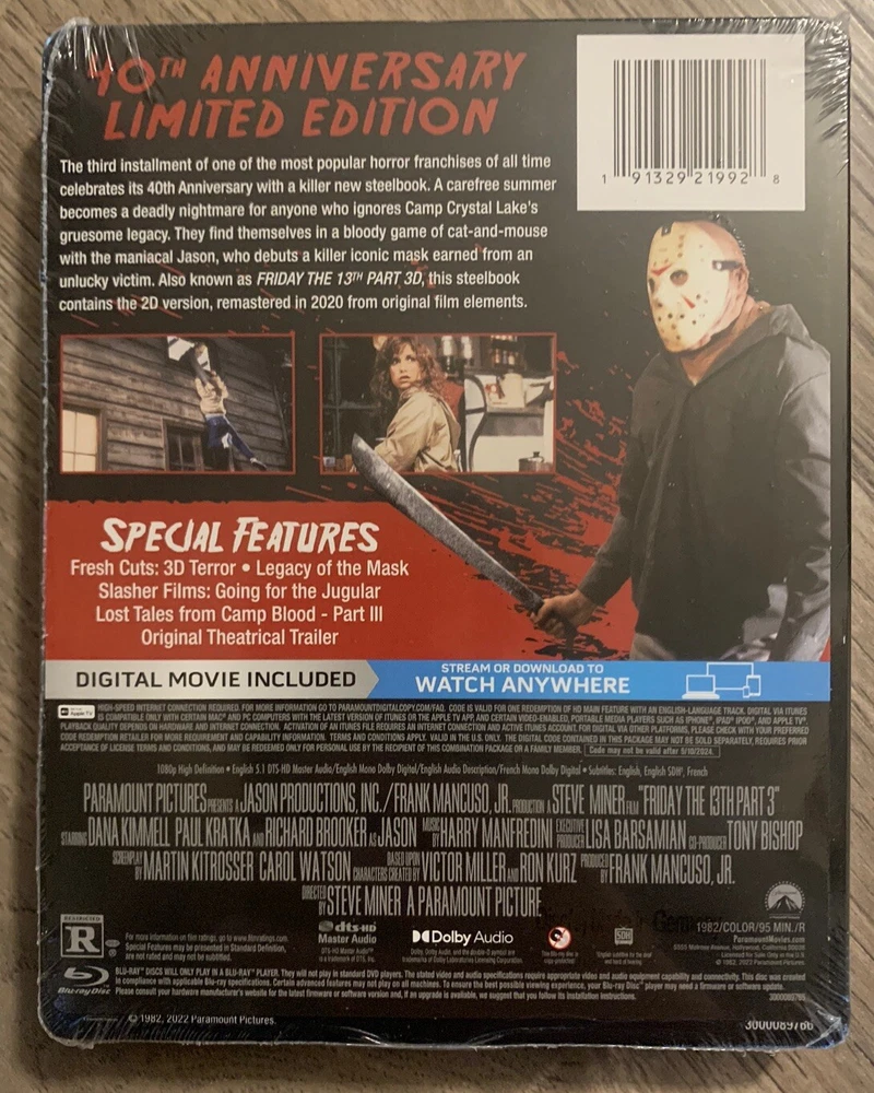 BRAND NEW Friday the 13th Part 3 (1982) Limited Edition Steelbook on Blu-ray and Digital.