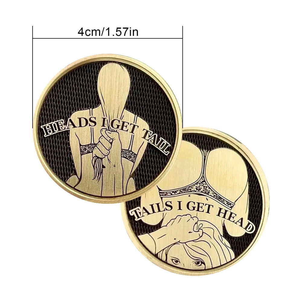 Features 1. This double-sided coin is both bold and fun, adding some playful charm to your collection! Bring a smile to your face with this unique coin and a little prank to your collection. Very suitable for flipping, collecting, or simply maintaining intimacy, as a fun reminder to never take life too seriously. 2. The design of this coin has a bold twist, with "Heads I Get Tail" written on one side and "Tails I Get Head" written on the other side. Perfect for those who appreciate a bit of humor and are not afraid to make things interesting, this coin is a unique addition to any collector's collection. 3. Provide meaningful coins for avid coin collectors. This project is a challenge for both parties. Made of high-quality alloy, beautiful and exquisite. Very suitable for collection, gifts, etc. 4. Perfect for date nights: Adding fun to your night with this fun coin is the ideal choice to break the ice, set the tone for a fun date night, or spark laughter at special moments. 5. Multi functional and portable: This lucky token is small and lightweight, easy to carry in your pocket or wallet, providing laughter and entertainment anytime, anywhere. Specifications: Material: Alloy Weight: 20g Size: 4 x 4 cm Package includes 1x coin