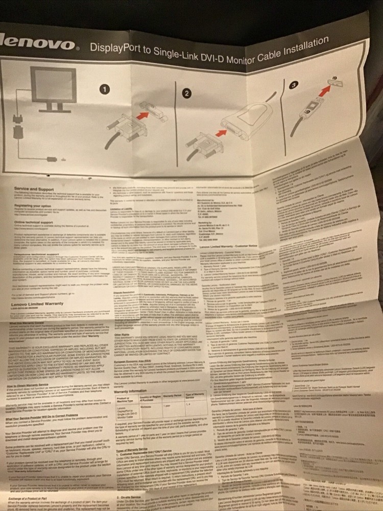 The Genuine Lenovo 43N9159 DisplayPort Single-Link DVI-D Monitor Adapter Cable is a 1 ft. long cable designed to connect a DisplayPort Male to a DVI Female interface. It features a flat cable design and comes in a sleek black color. This cable allows for a 1:1 connection without any split or duplication, making it ideal for connecting a display monitor to a compatible device. It is a genuine Lenovo product and does not contain any chemicals or materials specified in the California Prop 65 list.