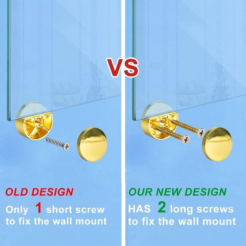 Golden Upgraded 3-5mm Frameless Mirror Mounting Hardware 8 Pack Dual-Screw Fixing Mirror Mounting Kit with Heavy Duty Long Screws and Anchors (8 Pack) Dual Screws Mounted Hardware: The old designs are only can be fixed by one screw, but each of this new gold upgraded mounting hardware can be fixed by 2 screws. So the mirror will be more firmly fixed on the wall. Heavy Duty Mirror Mounting Kit: With 16pcs of 1.4 in/35mm screws and 16pcs 1.1 inch/22mm anchors, the golden mirror mounting brackets are perfect for fixing heavy frameless mirrors which is 3-5mm in thickness. High End Surface Finish: The gold mounting clips are of chrome treatment with elegant surface, fitting your variety of decor themes and mirror/glass types. Easy to Install: Just use screw to fix the golden part (the thicker part) on the wall and clock wise rotate the front part to secure the mirror. Non-Slip Design: 8 Pack dual-screw fixing mirror mounting kit comes with soft plastic pads to secure the mirror more tightly and prevent it from slipping. SHIPPING - We offer FREE shipping on all orders! - We ship within 3 business days of payment, usually sooner - We use a selection of shipping services such as UPS, FedEx, USPS etc - We only ship to the lower 48 states, no APO/FPO addresses or PO Boxes allowed International buyers – please note: Import duties, taxes, and charges aren't included in the item price or postage cost. These charges are the buyer's responsibility. - Please check with your country's customs office to determine what these additional costs will be prior to bidding or buying. - We have confidence in our products, but if you are not fully satisfied please contact us within 30 days of purchase and you will get full refund. * Order Cancellation Policy ** You can return a product for up to 30 days from the date you purchased it. 1. The seller reserves the right to cancel the special case only due to eBay cancellation fee. 2. The decision of seller is the final. 3. The seller will respond to the cancellation request within 2 business days. Please wait for the result of cancellation. 4. In case the cancellation is not completed by some reasons, the buyer can follow the options below to get the refund. 4.1 The buyer can reject the item when it arrives. 4.2 The buyer can send the item back to the seller within 30 days If the buyer receives item (USA Shipment ONLY). The seller will provide the FREE return label to the buyer when the buyer opens " Return Item" case on eBay by using the reason as "Change my mind" ONLY. 5. When buyer has placed the order. The order will be processed and completed by automatic warehouse system within 5 minutes. In case that buyer sends the cancellation request after 5 minutes of placing the order, the request will be rejected. **Sending direct message to cancel the order is not allowed for every case.* Return Policy For the return case - If buyer would like to return the items for refund or replacement, please CONTACT SELLER to receive the free return label from seller. The refund or replacement will be processed with the tracking number of return label which is provided by seller only. The other ways of return which are not approved by seller will not be processed for the refund or replacement. CUSTOMER SERVICE - We try our best to make sure every customer is completely satisfied. - If there's a problem, feel free to message us! - We're happy to help.