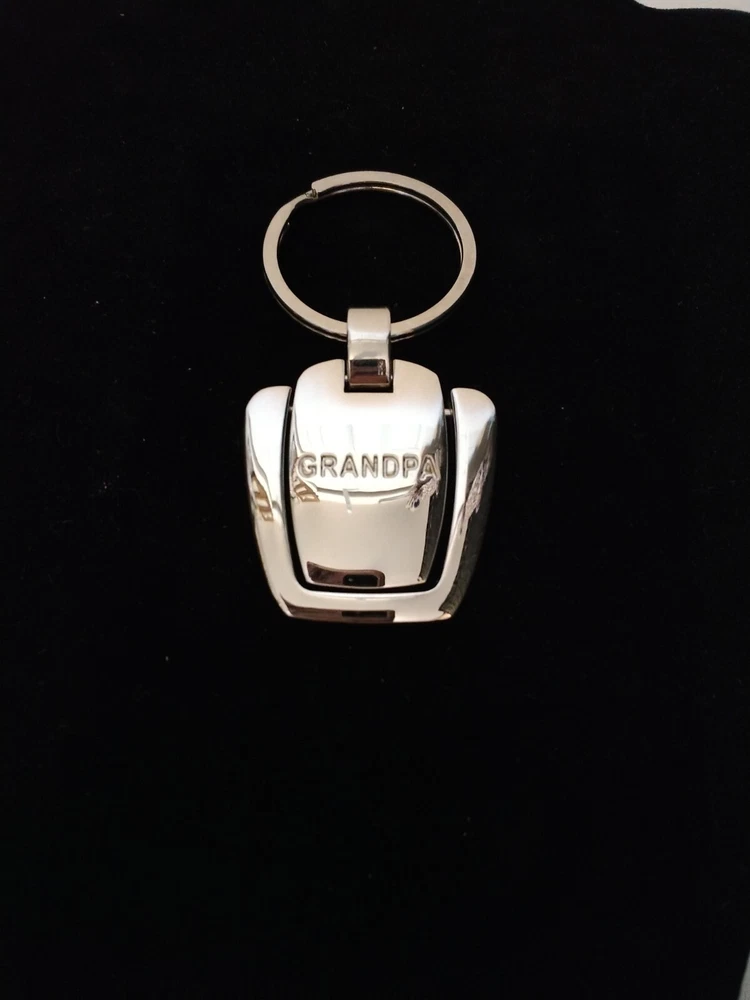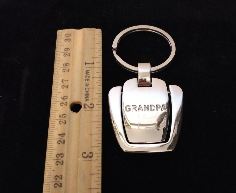 New With Gift Box Grandpa Engraved Medallion Key Ring Shiny Silver Tone Metal Medallion Moves In Motion Nice Solid As Seen In Photos From A Smoke Free Home