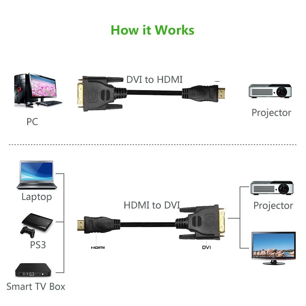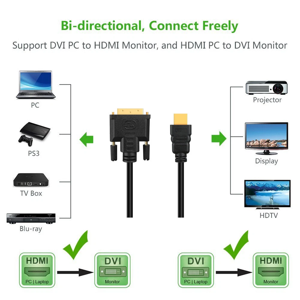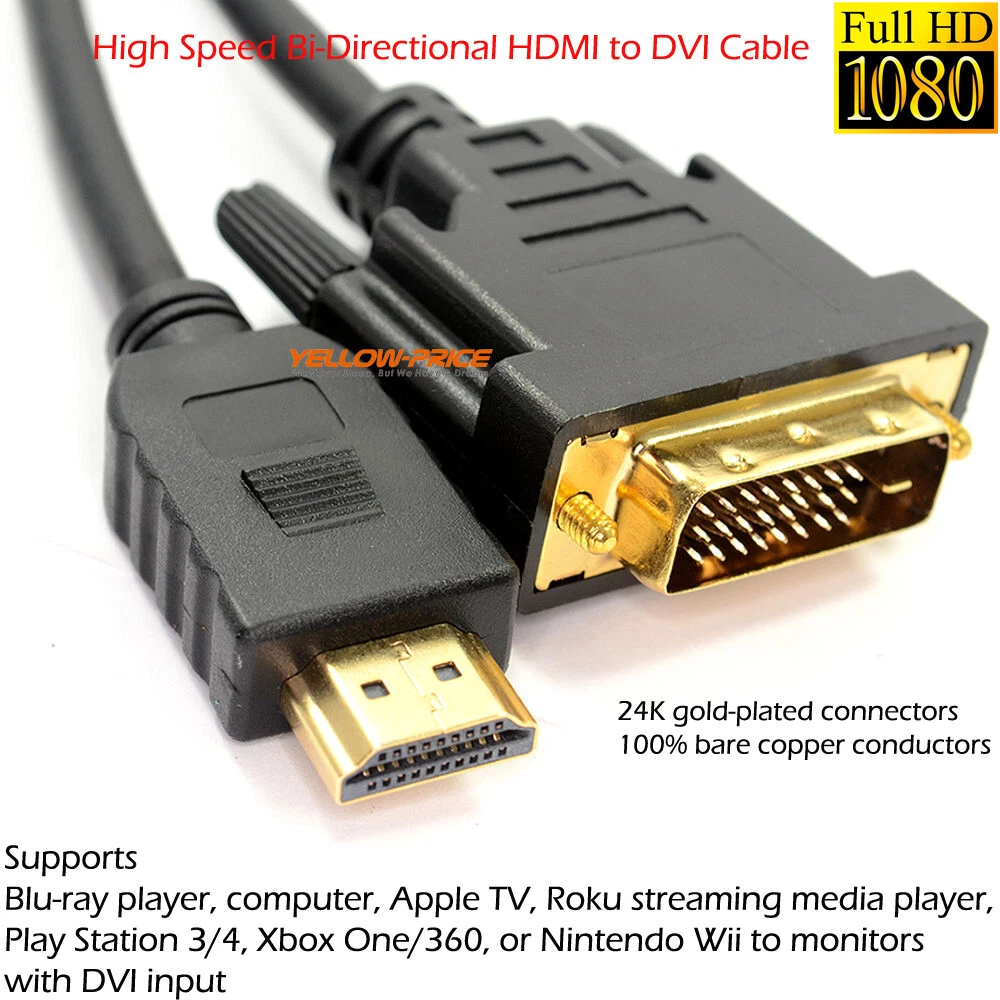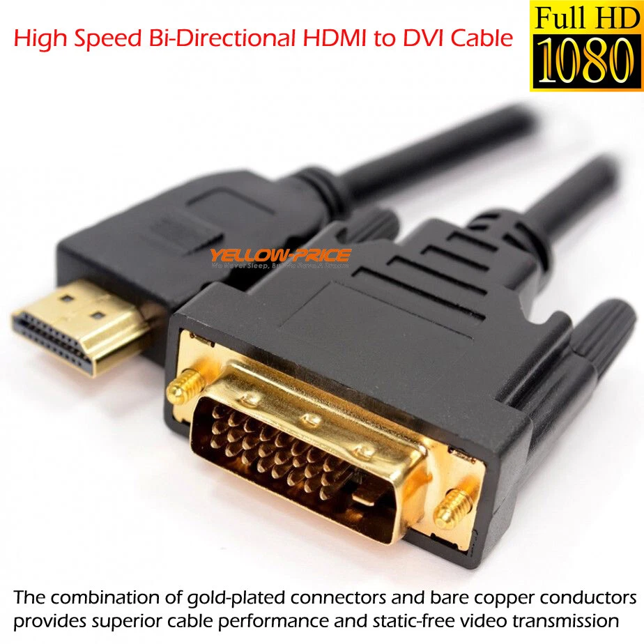 HDMI to DVI-D 24+1 Pin Monitor Display Adapter Cable Male/Male HD HDTV 6ft 10ft