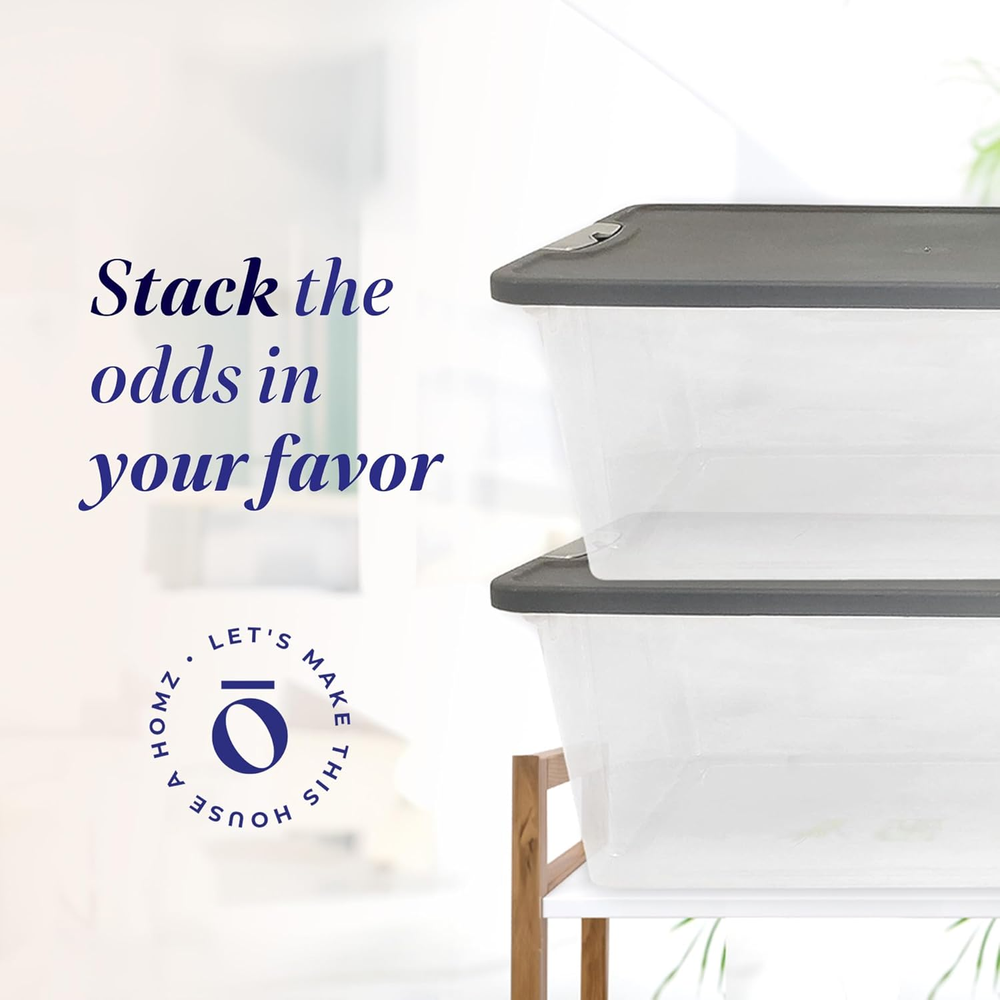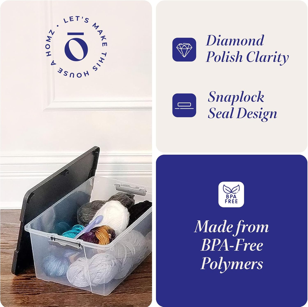 Store New Arrivals Add to Favorite View Feedback Contact HOMZ 4-Pack Secure Latch, Clear Plastic Storage Organizer Bins, 15 Quart, Gray Lid Description Item model number 3315CLGRTSDC.04 Storage Volume 15 Quarts Style Set of 4 Capacity 3.75 Gallons Number of Items 4 Assembly required No Item Package Quantity 1 Pattern Solid Unit Count 4.0 Count Number of Compartments 1 Batteries required No Brand HOMZ Material Resin, Plastic Maximum Weight Recommendation 6.24 Pounds Volume 15 Liters Recycled Content Percentage 90 Included Components Storage bin, lid Closure Type Snap Water Resistance Level Water Resistant Item Weight 5.2 pounds Opening Mechanism Latch Occasion Christmas, Housewarming, Baby And Expecting, Wedding & Engagement, Back To School Special Feature stackable, lockable, Stackable, shatterproof, transparent Color Gray Lid Global Trade Identification Number 10073527190254 Shape Cuboid Recommended Uses For Product For Arts & Crafts Size 15 QT Product Dimensions 16.25"L x 11.01"W x 6.84"H Number of pieces 4 Versatile Storage: Set of 4 plastic home organization containers ideal for storing office supplies, kitchen utensils, seasonal decor items, and more. Latching Lids: Organizer bins with dimensions of 16.25 x 11.01 x 6.84 inches include Snaplock latching lids to ensure the contents remain inside, keeping them dry and free from dust. Stack and Store: Stackable storage containers has indexed lids to stack each bin neatly on top of each other or nest inside the others for efficient storage. Made of see-through plastic to see its contents Good for the Earth: Feel guiltless with these plastic storage bins as they are made of 90% recycled materials. We acknowledge that the environment is important to our customers. Homz for your home: From organization to storage we have the container that you are looking for. Allow us to make your house a Homz. Product Description " data-position="triggerHorizontal"> " data-position="triggerHorizontal"> 15 Quart Comparison Table 2 Size Options 2 Clear Color Options Clear Gray Lid Colors Gray Pack of 4 Pack Options Pack of 2 Latching Lock Latches Lock Latching Lock 2 Size Options 2 Clear Color Options Clear Gray Lid Colors Clear Pack of 4 Pack Options Pack of 2 Latching Lock Latches Lock Latching Lock 2 Size Options 2 Clear Color Options Clear Gray Lid Colors Clear Pack of 4 Pack Options Pack of 2 Latching Lock Latches Lock Latching Lock 64 Quart 60 Quart 66 Quart ABOUT US We offer the best prices around on high quality products. Our E-store includes media such as books, movies, music and games while offering electronics, toys, sporting apparel, clothing, tools, general home, garden items and more. SHIPPING We are always working hard to ensure your package arrives as soon as possible. Please understand that some factors like weather, high postal traffic, and the performance of shipping companies are outside of our control. We offer free shipping to the lower 48 states and ship within 2 business days of payment, usually sooner. We do not accept P.O. Boxes. Please provide a physical address. RETURNS We offer a 30-Day Return Policy on items which you are not completely satisfied with. You have the option for a full-refund or an exchange of the item. No returns are available on items shipped outside of the USA. PAYMENT We accept PayPal. CONTACT US This page content is yet to come Please ad us to your favorite seller and visit again later Thank You CUSTOMER SATISFACTION We try our very best to make sure every customer is completely satisfied. If there's a problem, message us! We're happy to help.