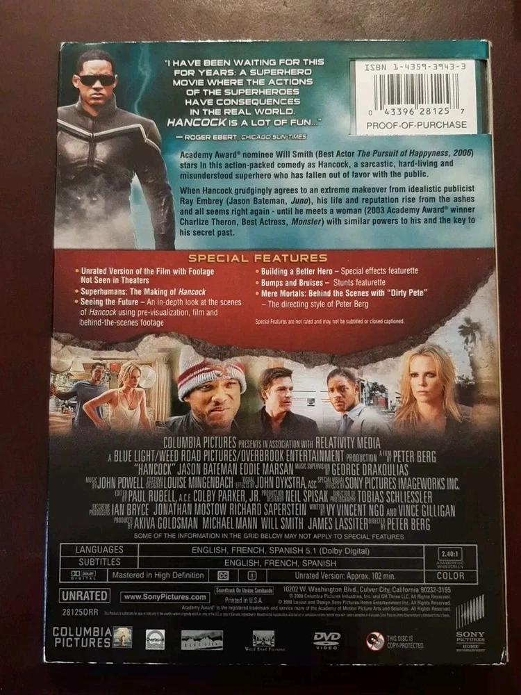 Format: DVD Studio: Sony Pictures Actor: Will Smith Rating: NR Movie/TV Title: Hancock Edition: Unrated Edition