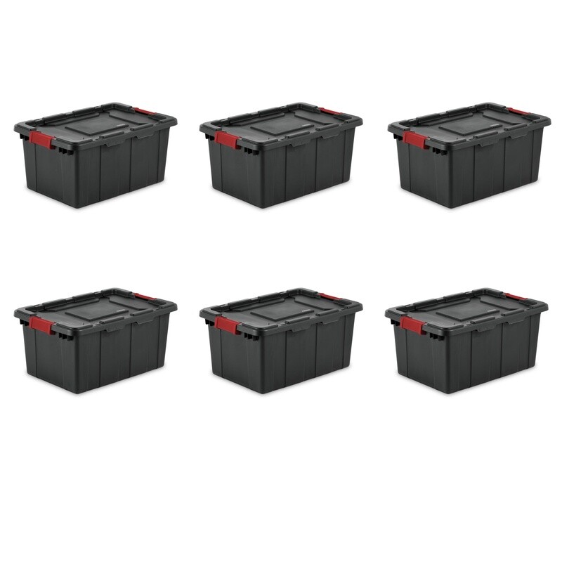 Heavy Duty 15 Gallon Plastic Storage Bin with Latch Lid 6 Pack Industrial Tote Box