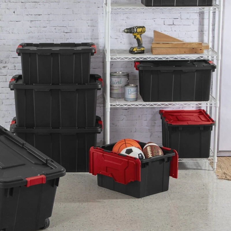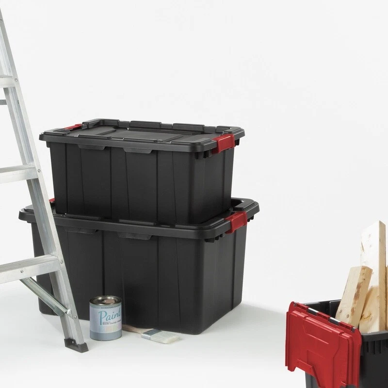 1. These bins are absolute beasts! Super sturdy, latches lock tight, and they stack perfectly. Holds way more than expected without any flexing. Perfect for garage or workshop organization.