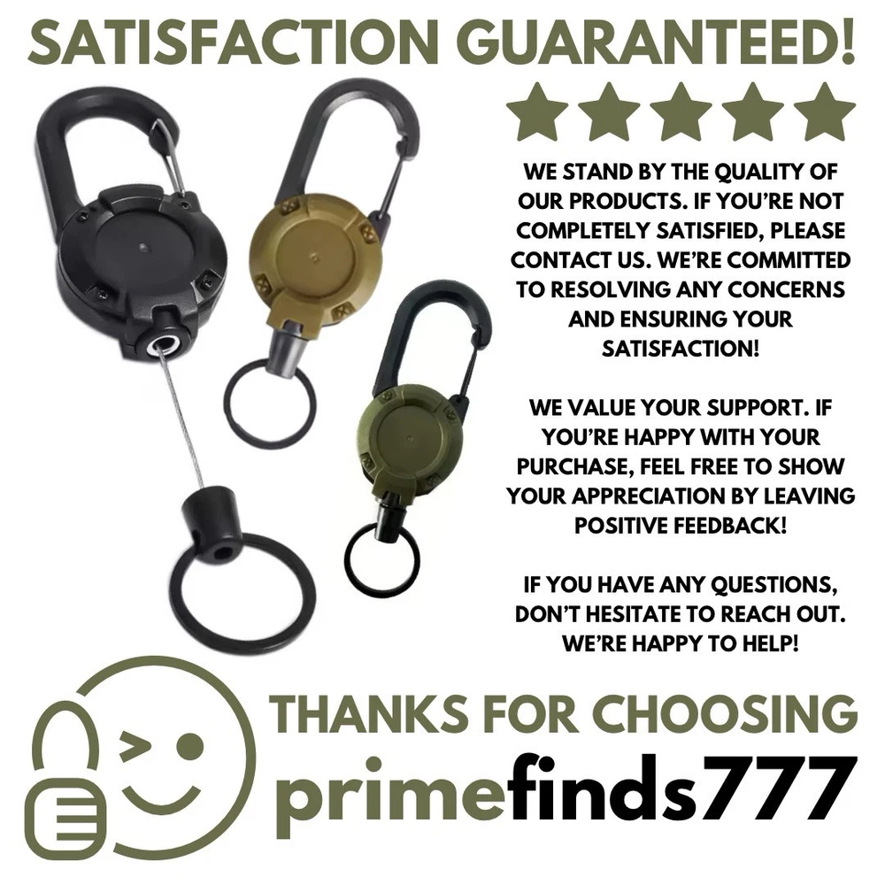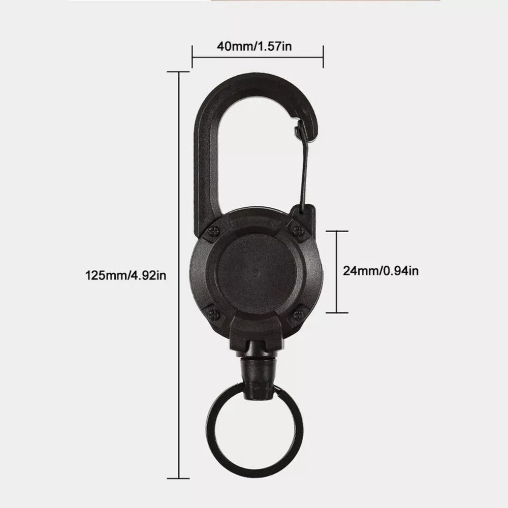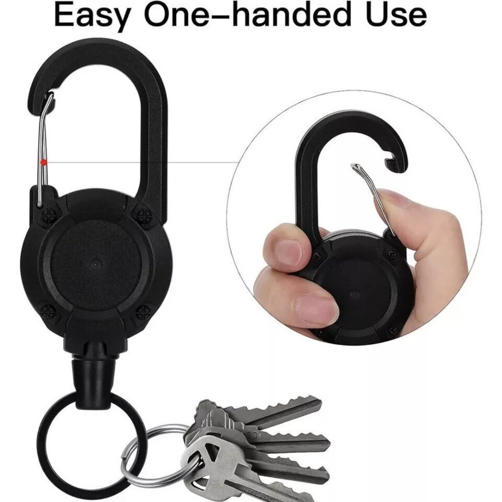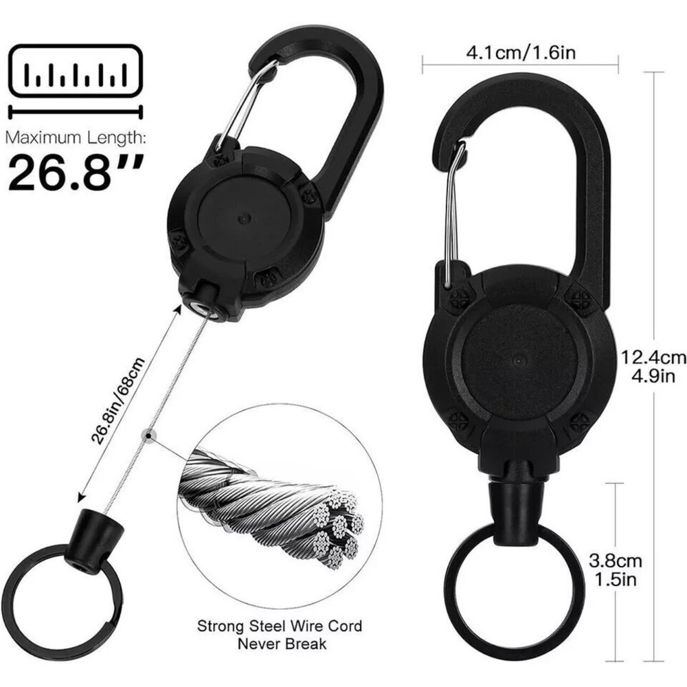 Heavy Duty Retractable Keychain with Carabiner Clip – Durable & Secure Product Features: • Heavy Duty Construction: Built with robust ABS material and a 1mm thickened telescopic steel cord, designed to securely hold keys, ID badges, key cards, and small tools. • Retractable Steel Cord: 60cm in length and 1mm in diameter, ensuring smooth extension and retraction for easy access. • Carabiner Clip: Easily attaches to belts, bags, and loops for convenient carry and quick access. • Compact & Lightweight: With a diameter of 40mm and a total length of 125mm (including the lower key ring part), this keychain is perfect for everyday use. • Secure Hold: Keeps your items safe and within reach, reducing the risk of loss. • Stylish & Practical: Available in Black, White, Army Green, and Khaki, offering a sleek design suitable for both professional and personal use. • Packaging: Each product is individually packed in an OPP bag. Specifications: • Material: ABS plastic, thickened telescoping steel cord • Keychain Weight: 299 grams Important Notes: • Dimensions: Due to manual measurement, there may be a slight size difference. • Color Variations: Due to lighting, screen settings, and viewing conditions, colors may vary slightly from the images. • Customer Satisfaction: If you experience any issues with your order, please contact us before opening a return case or leaving feedback. We are committed to resolving any concerns and ensuring your satisfaction! Upgrade your everyday carry with this reliable and stylish keychain. Order now to experience the perfect blend of durability, convenience, and design.