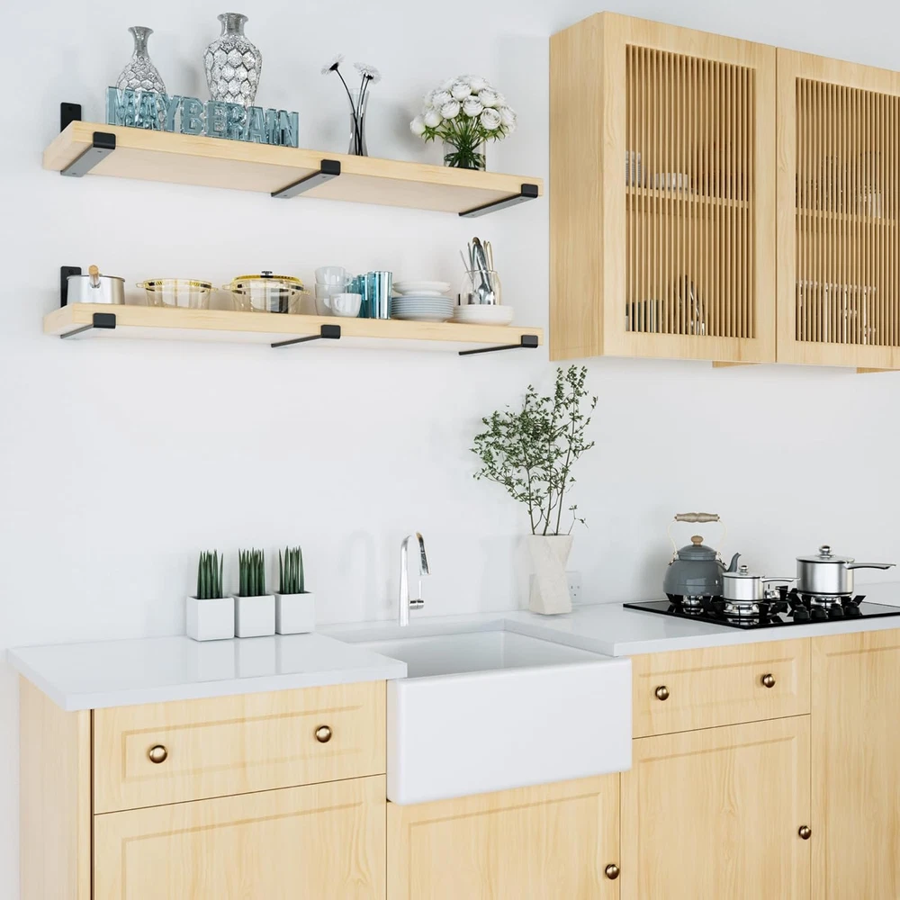 Menu Other Items Feedbacks About Us Contact Us Add To Favorites Heavy Duty Shelf Brackets 12 Inch (1/5") Thick, 6 Pack Floating Hidden Shelf Brackets, Rustic Industrial Shelf Brackets with Modern Iron Finish 【Thicker Heavy Duty Shelf Bracket 】:1/5 Inch thickness,MaybeRain 7.25 inch iron finish shelf brackets, which is thick as hell!These black shelf brackets are made of high quality steel. With high strength screws it can carry up to 100lbs.It is worth mentioning that, when used with 1.5-inch thick wood, it will have a hidden function to increases modern fashion sense for your room, also saves you lots of free space. 【90-Degree Angle】:The shape of floating shelf brackets are different from other brackets for shelves. With exquisite bending process we asure you that the bracket is totally 90° in horizontal,you can rest assure to put anything you want and it will not tilt. 【12inch Iron Finish Shelf Brackets】:With iron matte finish it will looks more special.Quality black protective coating, these shelf brackets adopt high temperated black powder coating tech, the surface is anti-rust and anti-corrosion. Weld-free construction appearance fits all areas of your home, making your kitchen, study, workbench look neat and organized. You'll be surprised how good and beautiful the quality is when you get it. 【Perfect DIY Shelving】:Our rustic industrial yet modern floating DIY L shelf brackets set includes 6 brackets for your wall mounted open shelves.Great for open shelving concept in a kitchen, displaying a library of books in a study or even for extra storage in a powder room.Use with an unfinished wood board for a more contemporary look. A stark contrast between metal and wood, or with a piece of weathered wood for a more farmhouse vibe. Product Description Carbon Steel Bracket Series Add to Cart Add to Cart Add to Cart Add to Cart Customer Reviews 5.0 out of 5 stars 1 5.0 out of 5 stars 2 5.0 out of 5 stars 2 — 3.0 out of 5 stars 2 Price $16.99 $ 16 . 99 $7.99 $ 7 . 99 $11.99 $ 11 . 99 $16.99 $ 16 . 99 — Quantity Included 6 4 8 8 8 Load Capacity 100 50 50 260 150 Dimensions 7.25", 9.25", 11.25" 4“, 5", 6" 3x5" 7", 9", 11", 14", 18" 4", 6", 8", 10" Material Carbon Steel Carbon Steel Carbon Steel Carbon Steel Carbon Steel Color Black Black Black Black Black With Accessories ✔ ✔ ✔ ✔ ✔ Item Specification Item dimensions L x W x H 11.25 x 9 x 6 inches Mounting Type Wall Mount Item Dimensions 11.25 x 9 x 6 inches Color Black Item Depth 9 inches Material Steel Material Type Steel Model Number Bracket-01 Finish Types Matte Iron Finish Type Matte Iron Size 11.25inch Dimensions Shipping Returns Additional Info Product Dimensions: 9.0 inches x 11.25 inches x 6.0 inches. Fast shipping is very important for us. Our standard shipping service is FREE. Your order will be shipped within 1-3 business days upon full payment received. Most items are delivered within 3-5 business days, however, please allow 3-10 business days. We are shipping only to USA. We only ship to the confirmed Paypal address. We reserve the right to cancel any order for any reason at any time. We are not responsible for undeliverable addresses. We offer a 30 day return policy from checkout winning date. Your satisfaction is guaranteed! If for any reason you are unhappy with your item, just return it within 30 days for a full refund, minus shipping cost. Please contact us prior to initiating a return so that we can issue you a refund authorization. Items defective upon receipt must be packaged in their retail packaging as if new and returned with a detailed description of the problem. Return shipping fees are not refundable. We reserve the right to decline any returns if the above guidelines are not followed. All of our items, unless otherwise stated, will only run on 120 volts. Please check to make sure your country complies with these specifications. If you have a problem or question regarding your transaction please contact us before leaving any type of feedback. We will work with you to resolve any problem you may have.