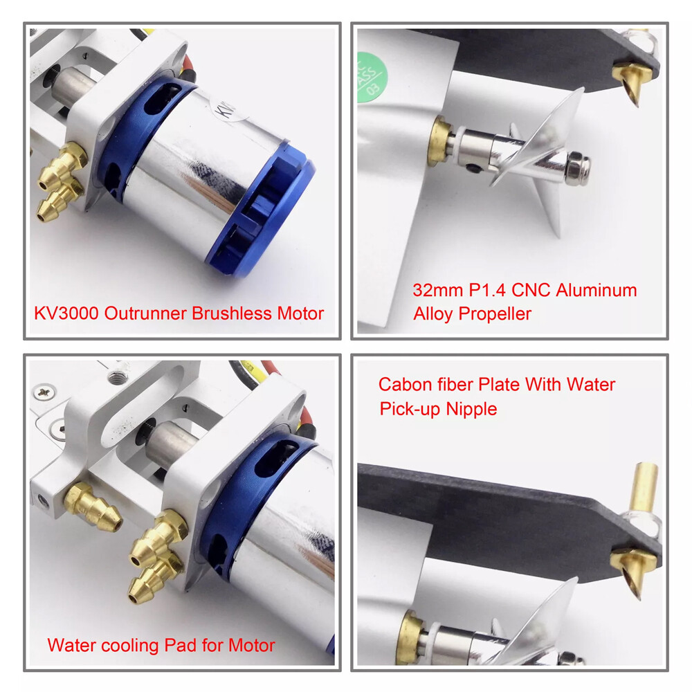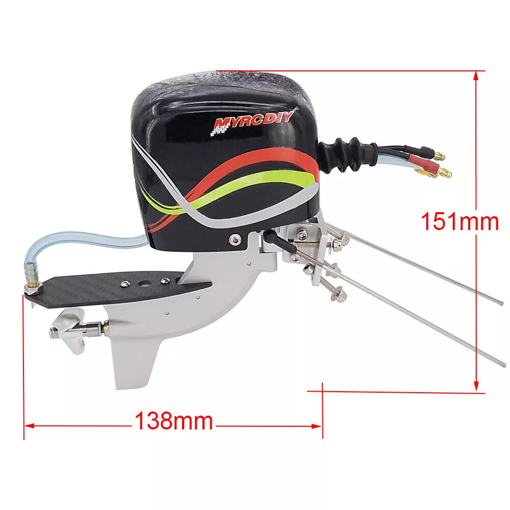 12V 3S KV3000 Outboard Motor Engine Propeller Thruster Boat Tail Drive System for RC Boat Yacht -- Description --This outboard thruster is designed for RC boat, RC yacht. It is suitable for body length less than 30inch RC boat. -- Specification & Features --* KV3000 Outrunner Brushless Motor with Cooling Pad * Working Voltage: 11.1V( 3S ) * Maximum current: 30A * Connection: 3.5mm male banana connector * Water Cooled CNC Motor Mount * Adjustable CNC Mounting Bracket * CNC Mid Section & Lower Unit * Carbon Fibre Anti Ventilation Plate * Plastic Housing * 1/8" 3.18mm Drive Shaft * 1/8" 3.18mm CNC 2-Blades Propeller D32mm, Pitch Ratio 1.4 * With 2PCS 2mm*150mm(D*L) tie rods * Dimensions: Height 156mm, Width 56mm, Length 134mm * Recommendation(Not included): 70A or larger ESC, 3S Li-Po battery -- Item Contains --1 piece of 12V 3S KV3000 Outboard Motor Engine Propeller Thruster Boat Tail Drive System for RC Boat Yacht