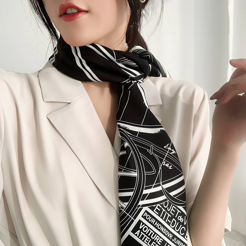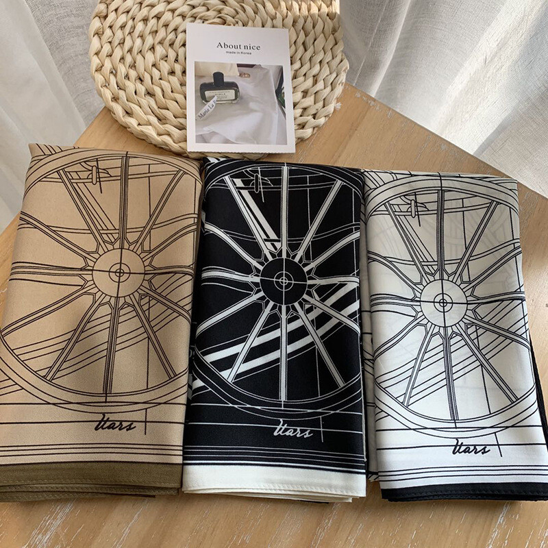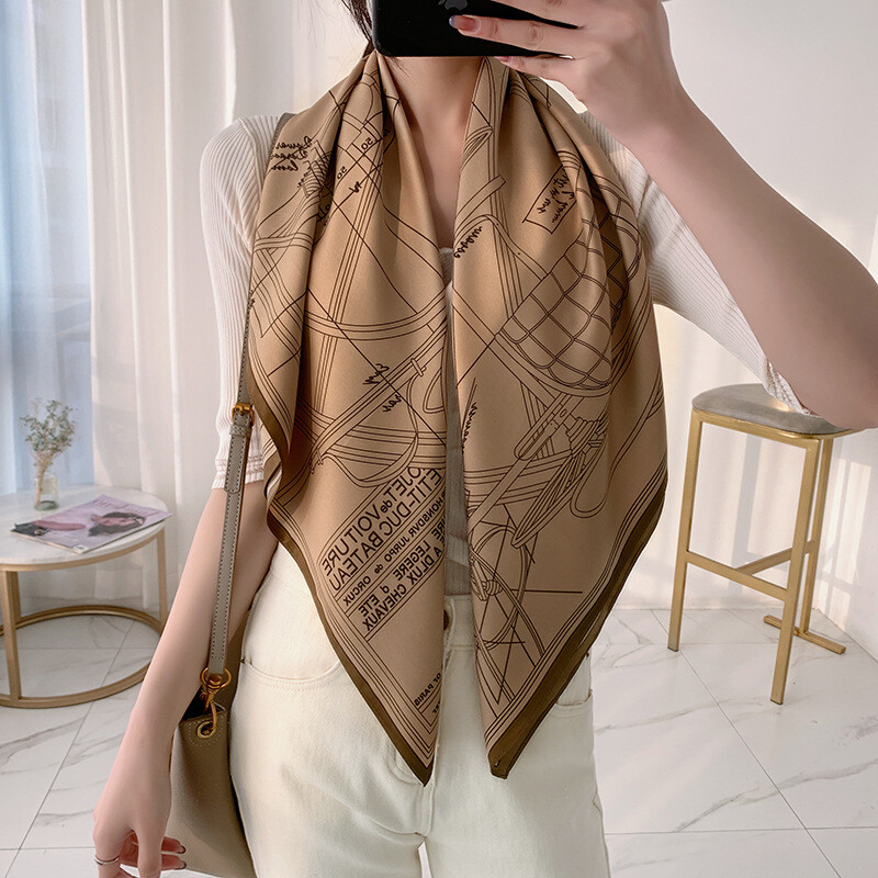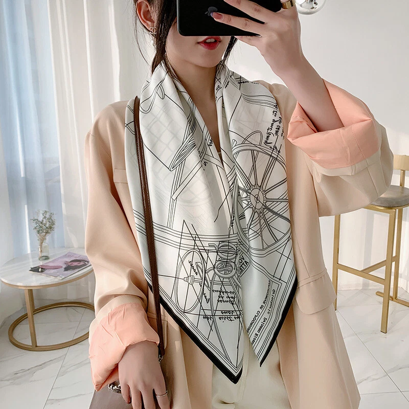 Imitate Twill Silk Scarf for Women – Stylish Carriage Print Shawl Hijab Bandana (90cm) for Fashion and Elegance
