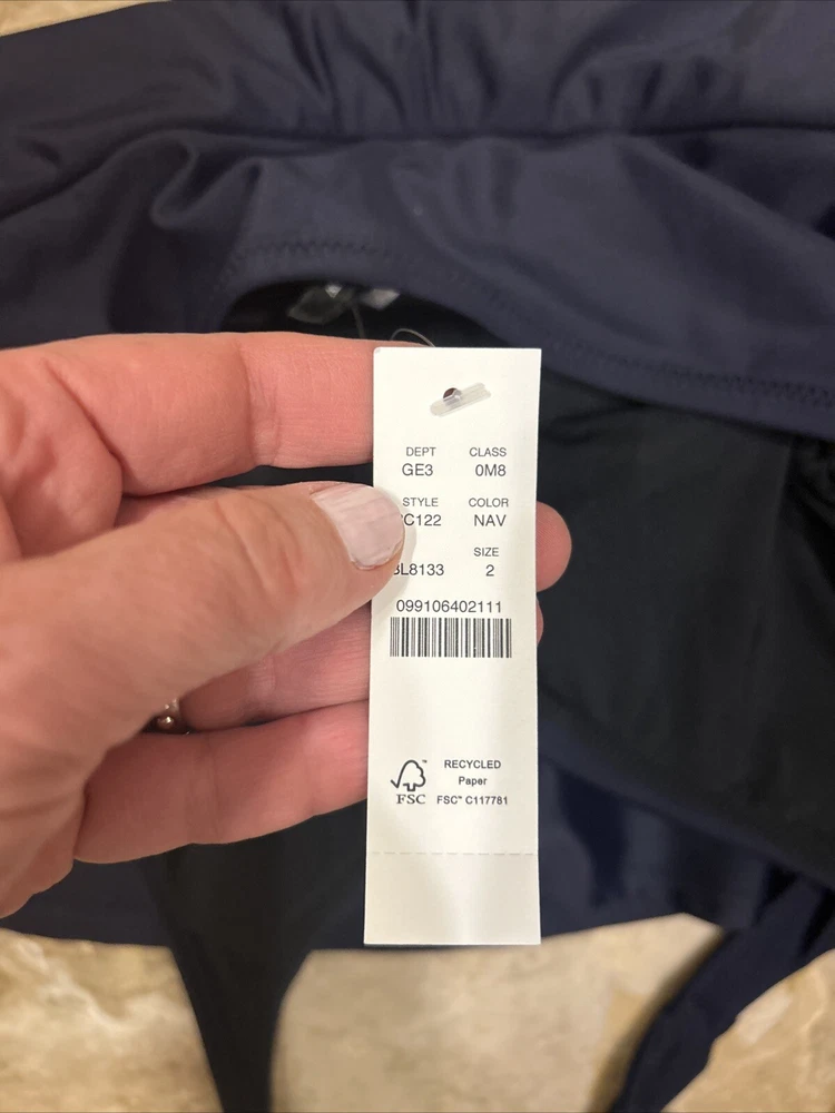 J.Crew $128 Halter Wrap Swim Dress Navy Size 2 BC122