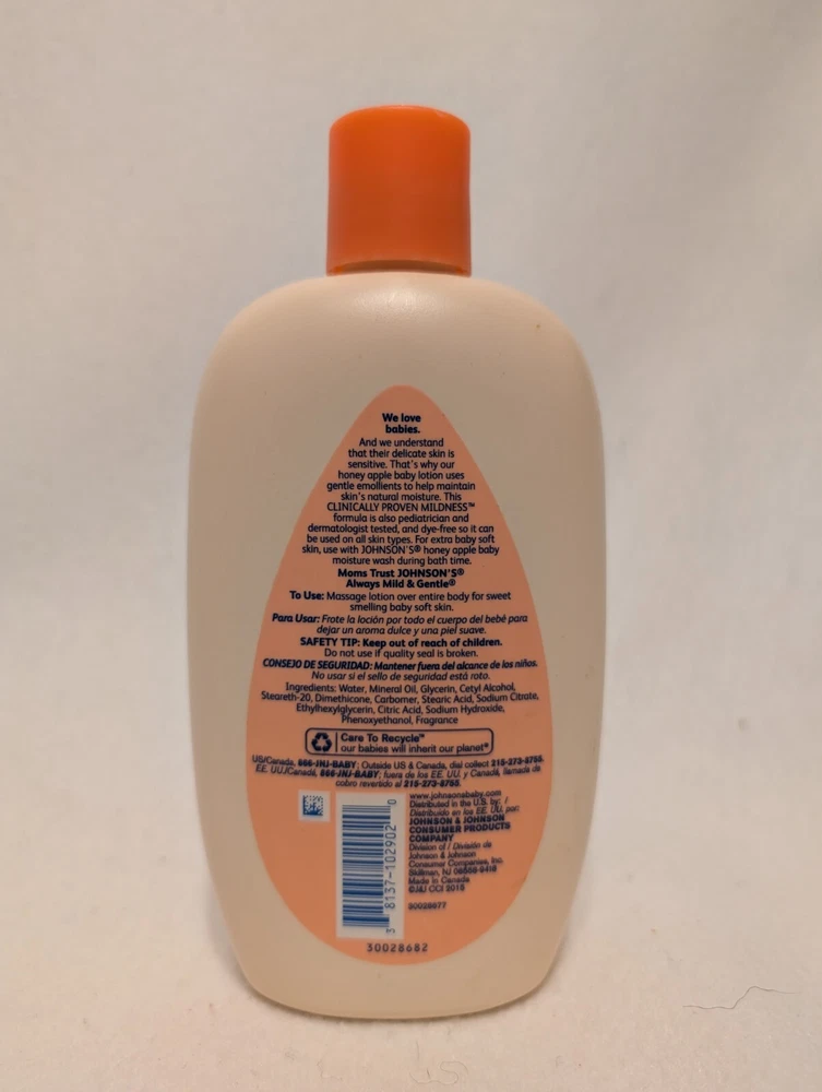 Johnson's Honey Apple Baby Lotion Discontinued 15 Oz Bottle 2/3 Full