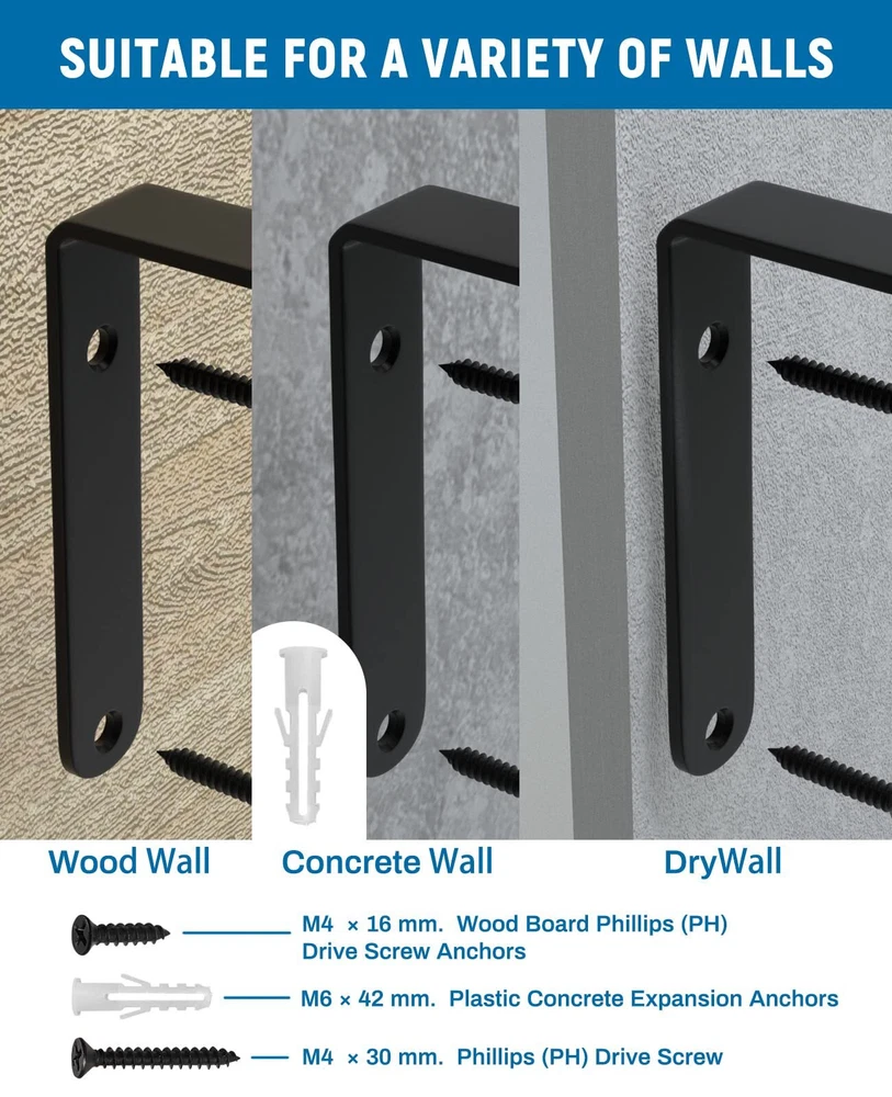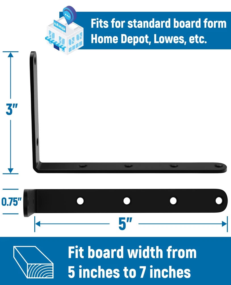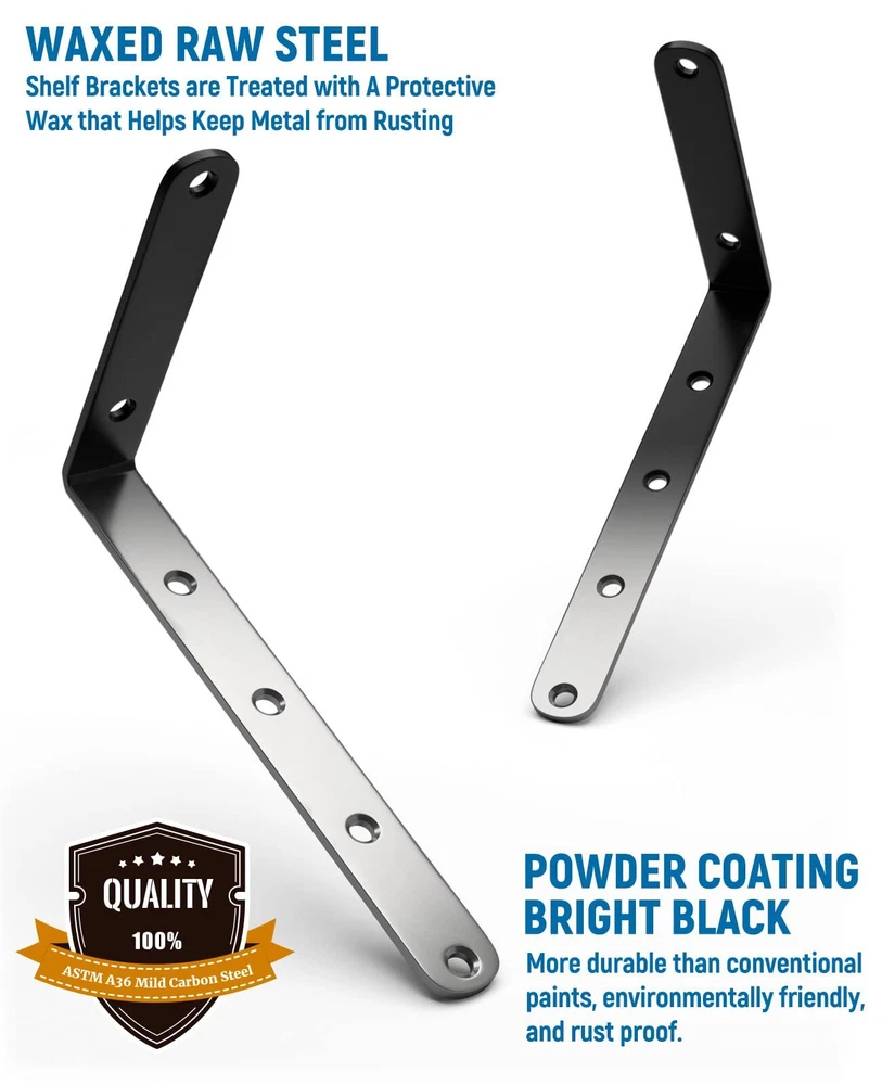 Superior Materials: Our brackets are made of high-grade carbon steel for superior weight capacity (45 lbs. for each pair) and durability, ensuring long-term shelf stability. Sophisticated Design: These brackets effortlessly blend with various interior styles, making them suitable for any room. Universal Compatibility: With 3” x 5” dimensions, these brackets accommodate diverse shelf materials, providing versatile storage options for any space, perfect for displaying books, or decorative objects. Hassle-Free Installation: Our package includes all required mounting hardware and easy-to-follow instructions for a seamless installation process. After-Sales Service: We are committed to providing top-notch customer support. If you encounter any issues or require assistance, our dedicated team is available to ensure your satisfaction with our product.