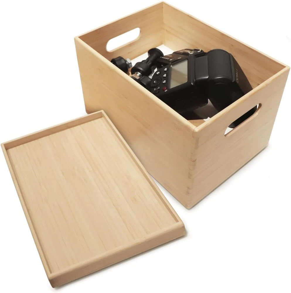 Lidded Bamboo Storage Bins & Box/Cube/Basket