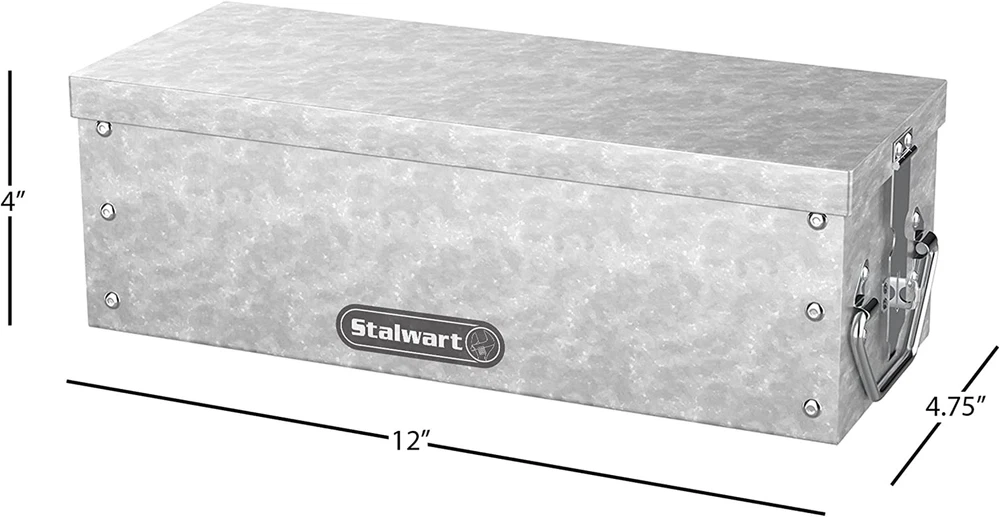 Store New Arrivals Add to Favorite View Feedback Contact Lock Box with Folding Handle - Durable Metal Storage Chest with Stackable Design to Secure Valuables, Cash, Jewelry, and Weapons by Stalwart (Silver) Description Item model number 75-005 Style Lock Box Capacity 228 Cubic Inches Pattern Solid Country of Origin China Batteries Included? No Chamber Width 12 Inches Batteries Required? No Brand Stalwart Material Metal Is Discontinued By Manufacturer No Manufacturer TRAUV Item Package Quantity 1 Water Resistance Level Waterproof Item Weight 16 ounces Size 1 Count (Pack of 1) Special Features Durability,Durable,Sturdy Special Feature Durability,Durable,Sturdy Part Number 4758599 Mounting Type Freestanding Color Silver Global Trade Identification Number 00886511807129 Shape Rectangular Chamber Depth 12 Inches Included Components Lock Box Product Dimensions 12"D x 4.75"W x 4"H Number Of Pieces 1 SECURE STORAGE- Safely secure cash, jewelry, heirlooms, passports and other valuables in this metal locking box. Keep guns, knives or medication safely locked away from children. This safe is also stackable for easy discrete storage at home or office. STURDY BUILD- This Stalwart safeguard lock box is constructed from sturdy metal material to further protect your valuables and for long lasting durability. PORTABLE- A fold down handle secured to the top of the lock-box allows for great peace of mind when traveling with valuables such as passports, cash, or even guns and ammunition. COMPACT DESIGN- Despite this box’s longest side being a foot long, it boasts a spacious 228 inch interior volume. The compact size of the lockable box makes it a great office or desk safe or even a good option to protect valuables in your car. PRODUCT DETAILS- Dimensions: 12 inch (L) x 4 inch (H) x 4.75 inch (W). Sturdy metal construction. Lock hasp attached (lock not included). The Stalwart Metal Storage Lock Box is designed to keep your valuables safe. The lockbox allows you to keep loose cash, jewelry, heirlooms, or any other valuables you may have secured within this sturdy metal lock-box. The lockbox can be used to protect your children by storing prescription medicine, small guns, knives, and ammunition inside this box and attaching a lock (not included) to the lock hasp. Made with durable meal for long lasting use, and with a spacious 228 cubic inch interior, this stackable storage lock box is an ideal option for your home, office, or car. IMPORTANT: Avoid buying counterfeit products and transacting with unauthorized sellers. Look for our logo on the packaging for every one of our products. Stalwart is a registered trademark protected by U.S. Trademark law and will be vigorously defended. ABOUT US We offer the best prices around on high quality products. Our E-store includes media such as books, movies, music and games while offering electronics, toys, sporting apparel, clothing, tools, general home, garden items and more. SHIPPING We are always working hard to ensure your package arrives as soon as possible. Please understand that some factors like weather, high postal traffic, and the performance of shipping companies are outside of our control. We offer free shipping to the lower 48 states and ship within 2 business days of payment, usually sooner. We do not accept P.O. Boxes. Please provide a physical address. RETURNS We offer a 30-Day Return Policy on items which you are not completely satisfied with. You have the option for a full-refund or an exchange of the item. No returns are available on items shipped outside of the USA. PAYMENT We accept PayPal. CONTACT US This page content is yet to come Please ad us to your favorite seller and visit again later Thank You CUSTOMER SATISFACTION We try our very best to make sure every customer is completely satisfied. If there's a problem, message us! We're happy to help.
