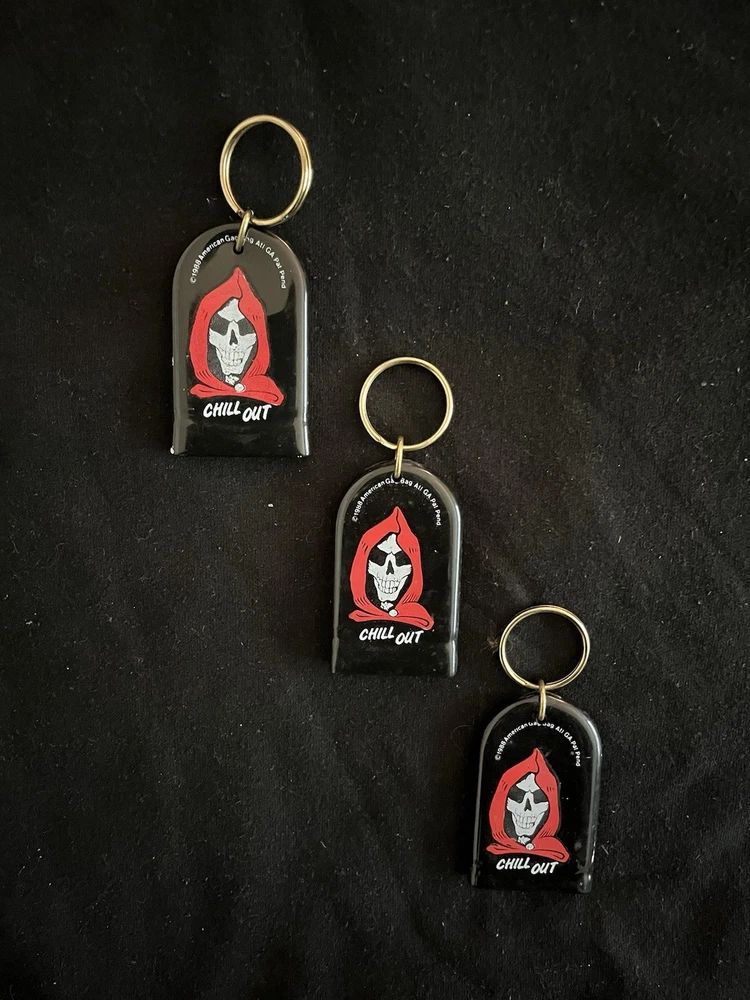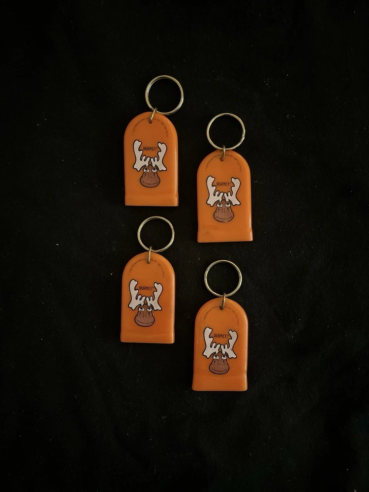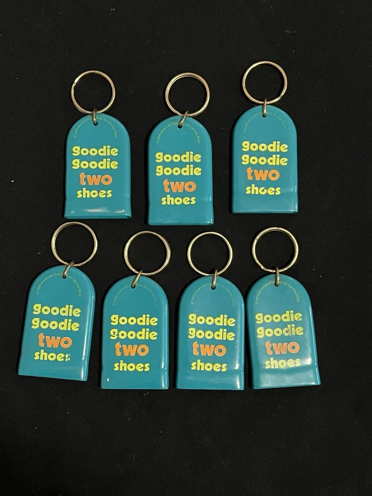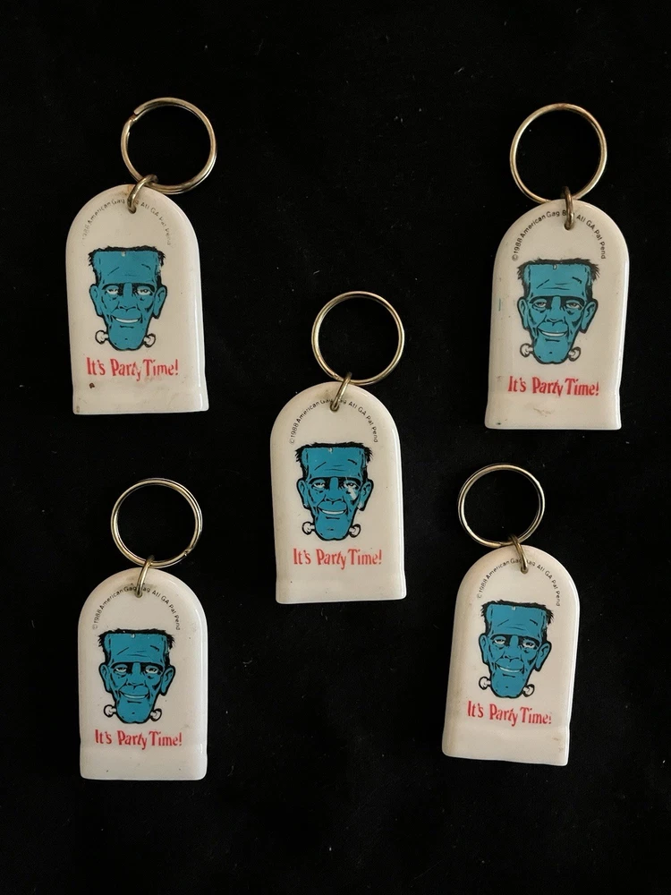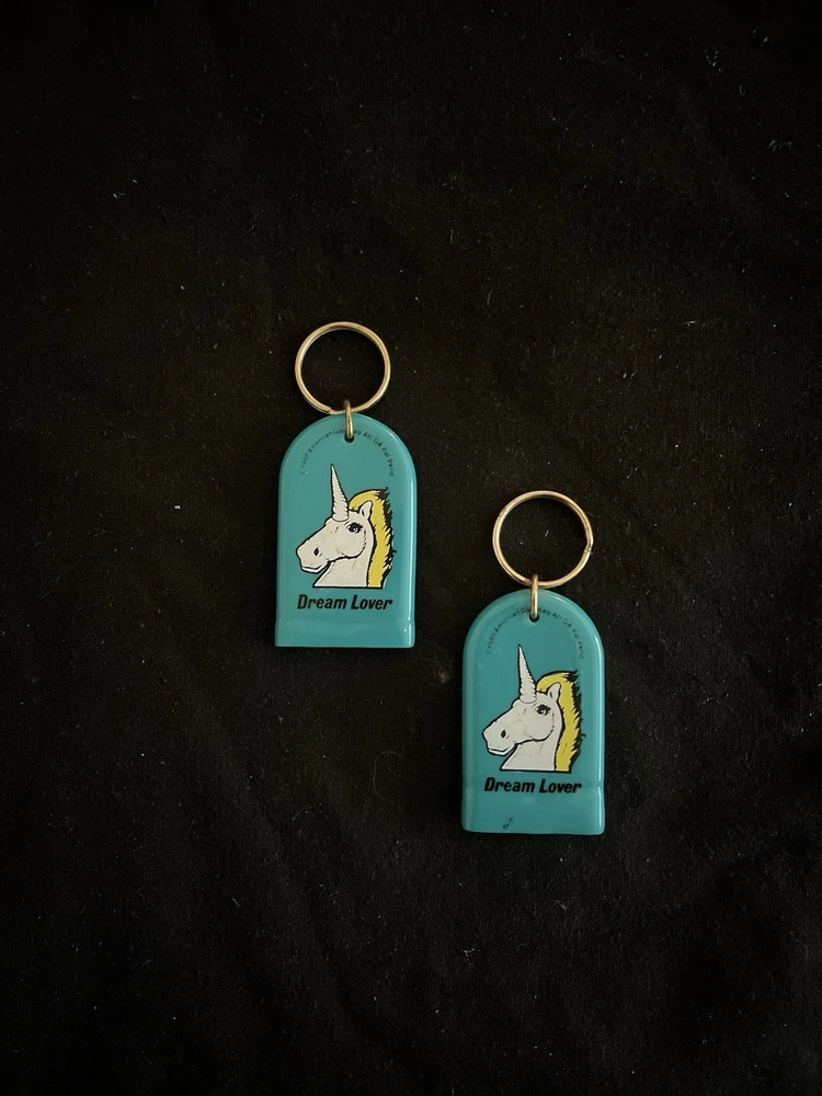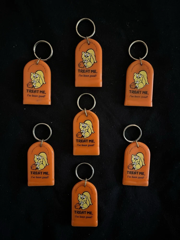 A set of American 80's vintage keychains accessories featuring a multi-color design. Made of rubber, plastic & metal. These keychains have a detachable keyring for added convenience. Perfect for adding a retro touch to your keys or bag, these keychains are a fun and nostalgic accessory for any modern era enthusiast looking to add a touch of vintage flair to their collection. Check my other listings for all the key chains that are in the box