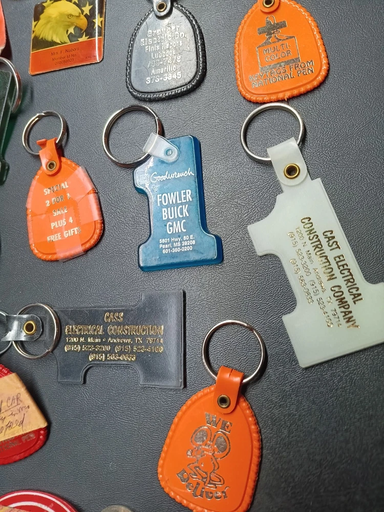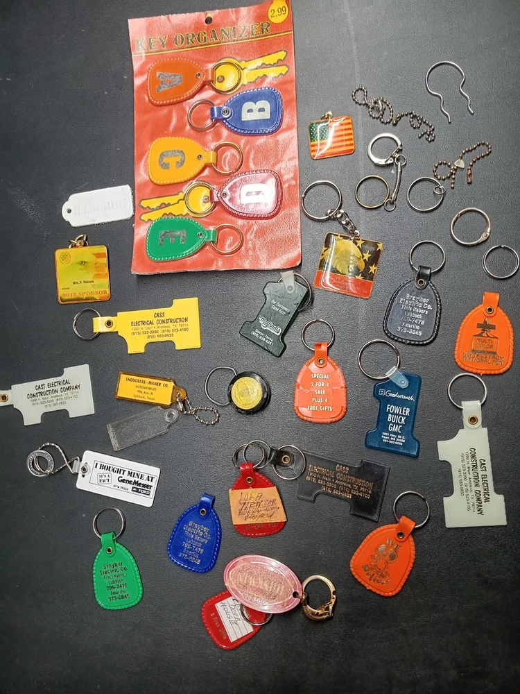 Lot Vintage Keychains Advertising Mixed Key Bobs Some New Old Stock, and Parts