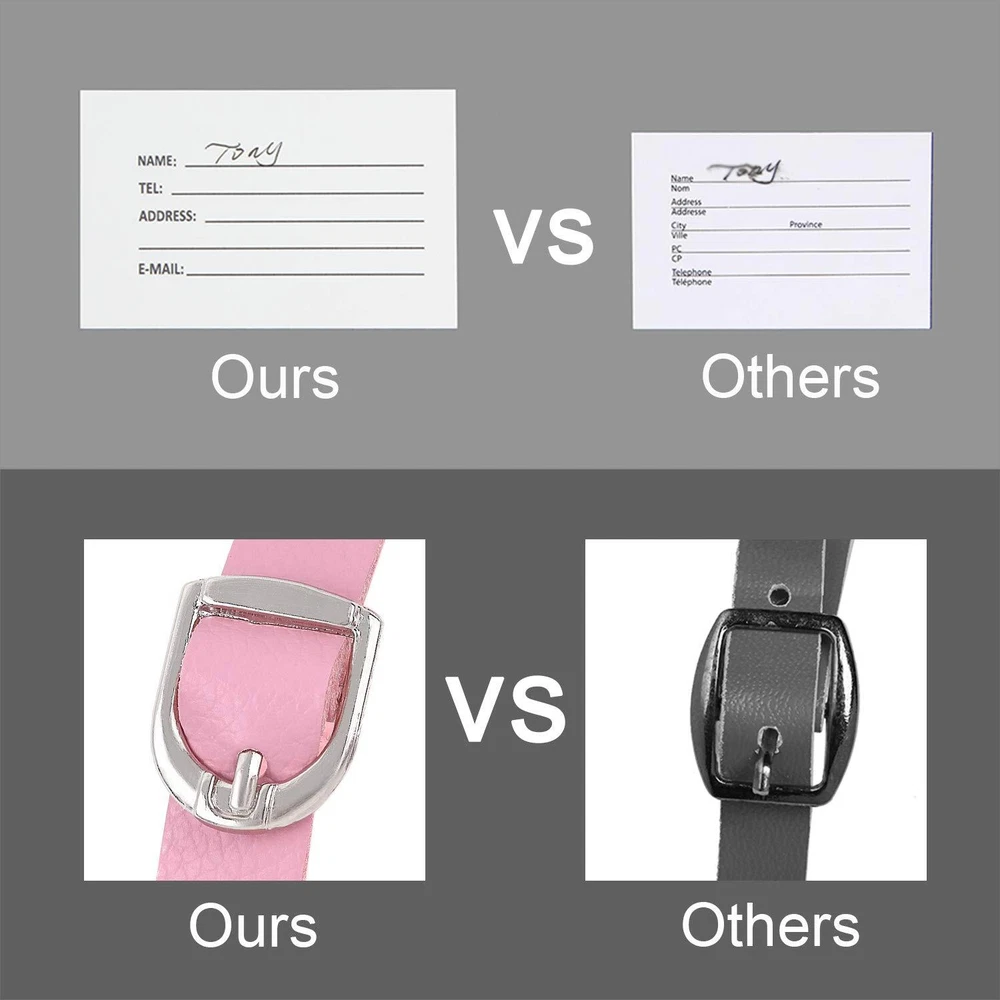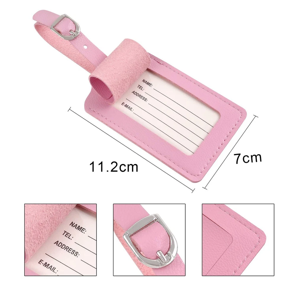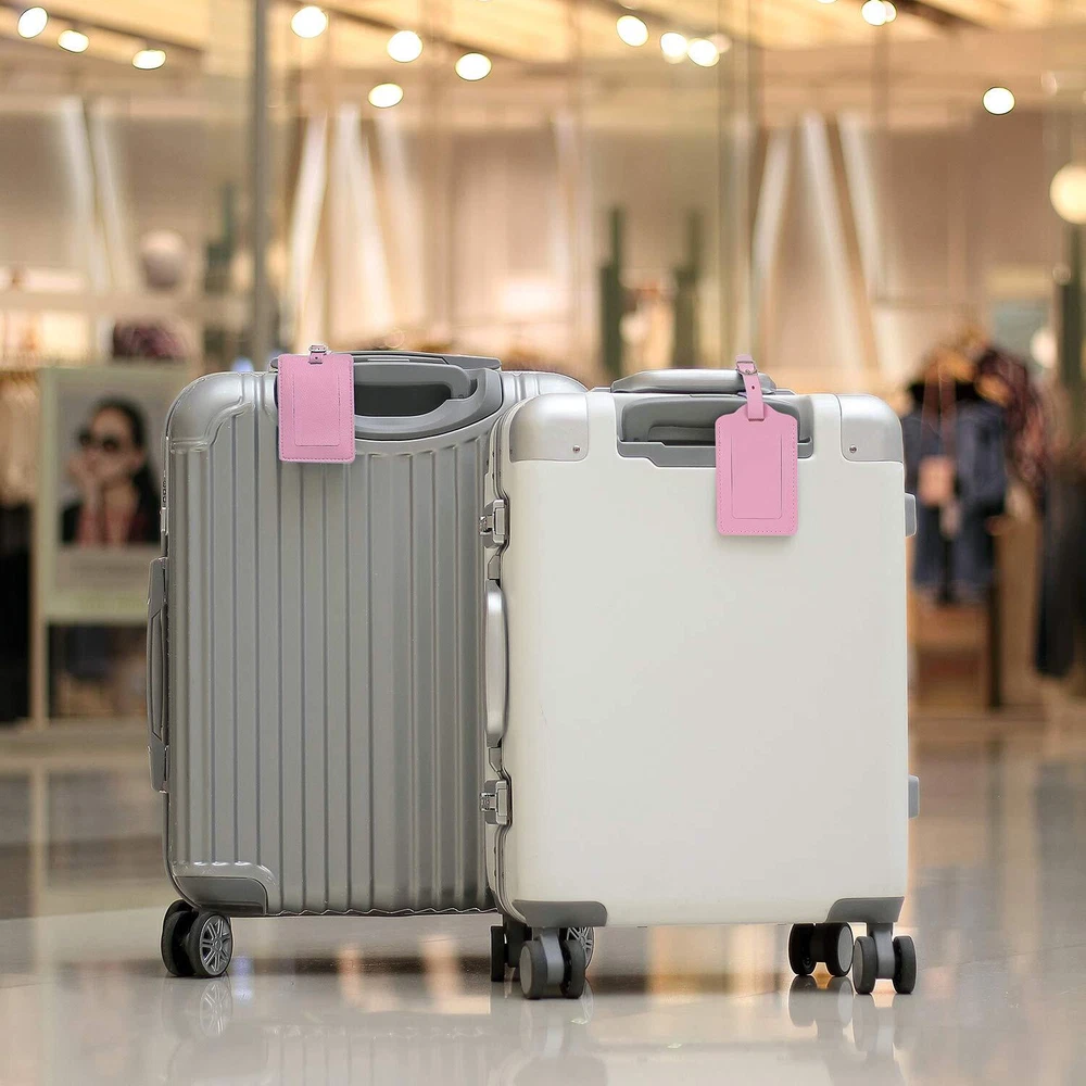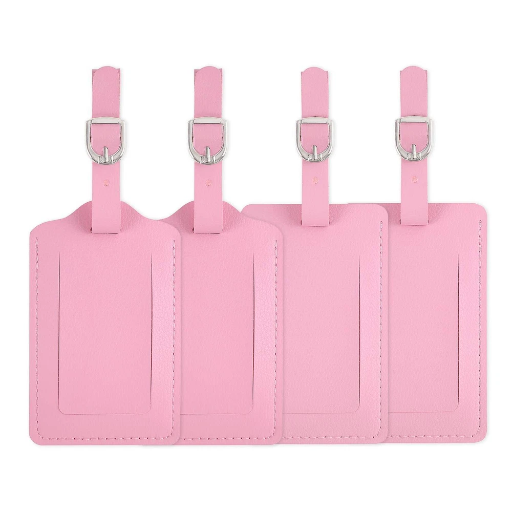 ✅ EXCELLENT MATERIAL QUALITY:Superior soft leather luggage tags, no smell, environmental. Exquisite stitching makes the tag durable. Adjustable durable strip, easy to attach and remove. And the belt connects your luggage and tags closely. The buckle is made of stainless steel .It’s very durable .Easy to hang on with buckle, prevent your luggage against loss. ✅ EASY TO IDENTIFY:Bright pink color helps you identify luggage and suitcase easily. With the stylish design, you will find your luggage quickly on the conveyor belt even though there are many same luggage. you don’t need to worried about others take your luggage by mistakes. ✅ PRIVACY INFORMATION COVER:Privacy back cover, that fully protect your information. You don’t worried about your information being read by others, as the flap will cover it. Leather luggage tag come with a cardboard, you can write your personal information. ✅ WATERPROOF:When you open the flap, there is a PVC surface above the card to avoid card moist. ✅ USAGE SCENARIOS: for business card, luggage, bags, briefcases, baby strollers, pet tags, keys, office ID tags etc. Packing:4 luggage tags.