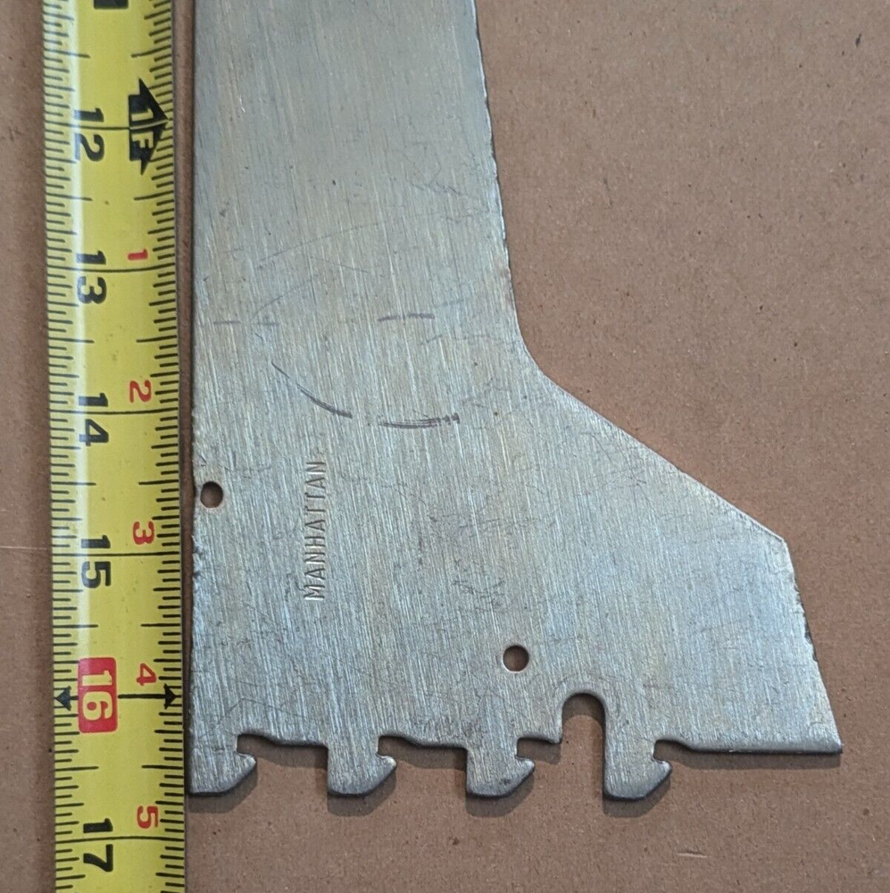 For sale is a Manhattan metal shelf bracket measuring 16.5 inches in length and 4.5 inches in width. Crafted from high-quality galvanized steel, this heavy-duty bracket is corrosion-resistant and built to last. It features minor wear and scratches but remains fully functional. Perfect for industrial shelving, heavy-duty support, or replacement projects. Keywords: Manhattan shelf bracket, heavy-duty support, industrial shelf bracket, galvanized steel shelf holder, metal shelf support. Brand: Manhattan Type: Metal Shelf Bracket Material: Galvanized Steel Dimensions: Length: 16.5 inches Width: 4.5 inches Condition: Pre-owned, with minor wear and scratches (visible on the surface). Application: Ideal for industrial shelving or heavy-duty support projects. Features: Durable, corrosion-resistant, and easy to install.