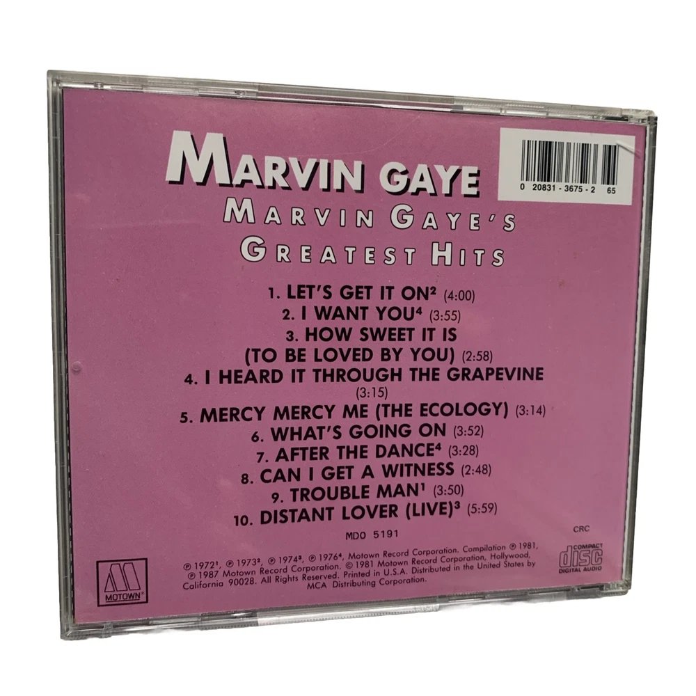Marvin Gaye - Greatest Hits (CD, 1987, A Motown Compact Classic) For fans of classic R&B and soul music, this CD is a must-have. Featuring the greatest hits of Marvin Gaye, this album showcases the talent and artistry of this Motown legend. With songs like "What's Going On" and "Let's Get It On," listeners will be transported back to the 1970s when Gaye ruled the airwaves. The CD itself is in excellent condition (rated as "EX"), and comes in a standard jewel case with very good (VG) case condition and excellent (EX) inlay condition. This 1987 release is a Motown Compact Classic edition. Don't miss your chance to own this piece of music history.