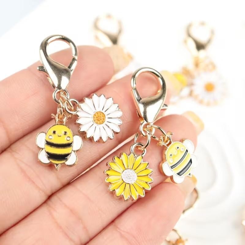 Theme: Floral Features: Detachable Keyring Main Colour: Yellow Material: Metal Personalise: No Shape: Circle Brand: Honey Bee